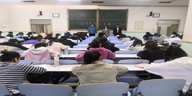 在班级民主评选环节,85位本科生与35位研究生拟发展对象思想作风优良、政治立场坚定、入党动机纯正,获得了班级学生群众的“好口碑”,在民主投票后顺利来到笔试考试。此次考试采取闭卷形式,题型分别为单选题、多选题、简答题和论述题,主要考察学生们对党章党规、党的基本知识、党的十九大、十九届五中全会和习近平新时代中国特色社会主义精神等的掌握,也通过近期热点事件考察学生的思想是否活跃和忠诚,是否能够与时俱进。考试开始前,监考老师维持考场秩序,并严肃考试纪律,坚决杜绝触碰党员发展红线。在考试过程中,各拟发展对象实事求是,严守纪律,沉着冷静认真答题,充分展现了他们扎实的理论功底和优良的思想品格,为成为一名合格的党员迈出了新的一步。