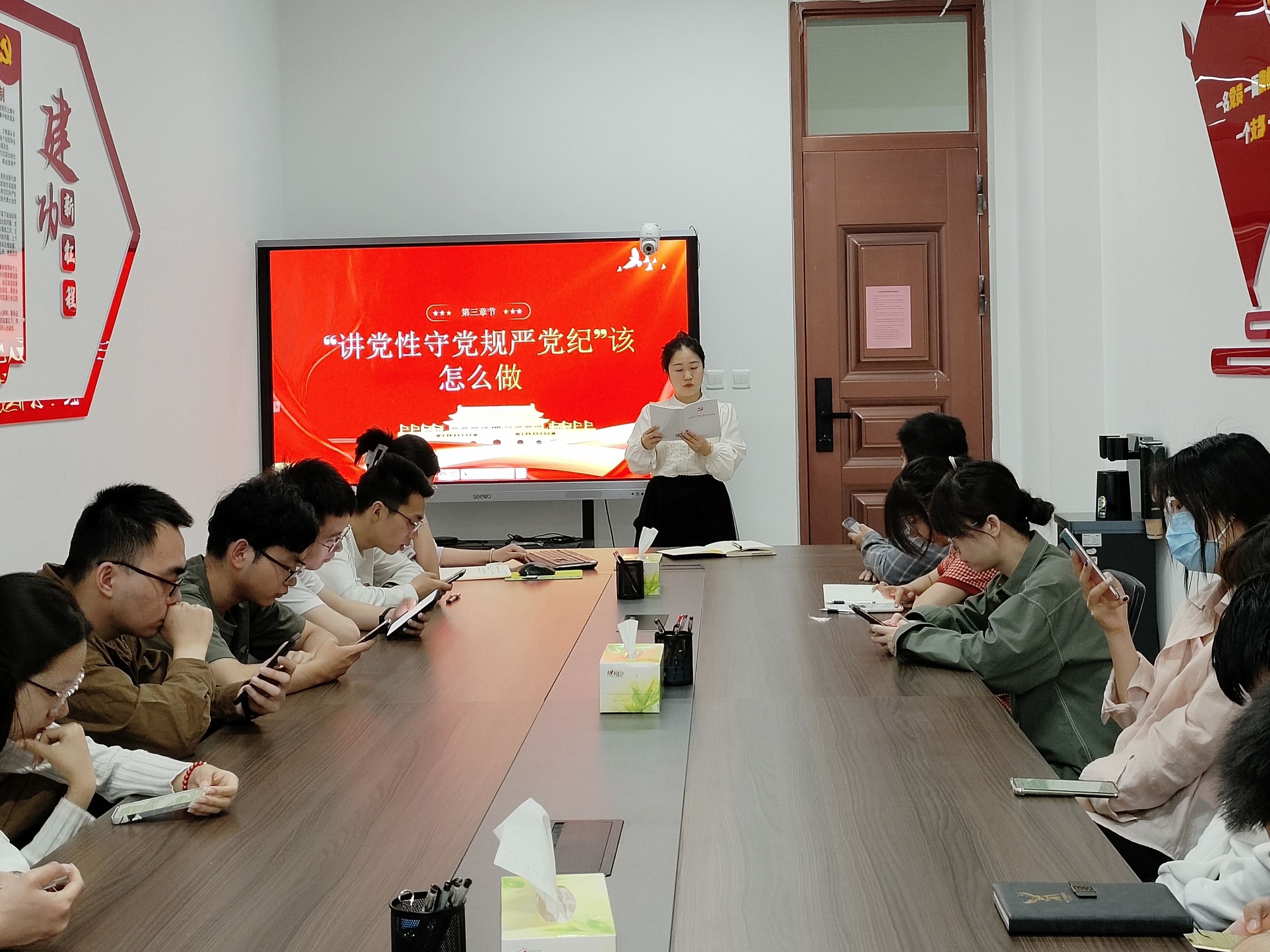 学生第三党支部以“做讲党性、守党规、严党纪的时代新人”为主题开展党日活动。支部书记张晶带领党员们集体学习了《条例》内容,强调支部党员们在学习过程中要认真执行“原原本本学、融会贯通学、联系实际学”的要求。学习党规党纪,对进一步增强党章意识、增强党性、增强全面从严治党的自觉性和责任感具有重大意义。
