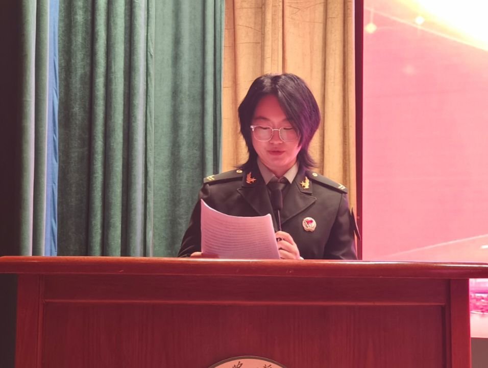 活动伊始,现场播放了一部以“火热军营,精彩人生”为主题的征兵宣传片,展现了军人的坚守奉献与军营的独特魅力,营造出浓厚的征兵入伍氛围。随后,23级食工一班张慧敏、24级食品一班徐媛率、25级生工一班张佩瑶作为退伍复学学生代表先后分享了自己的服役经历,让同学们真切感受到了军营生活的热血多彩,她们鼓励有志青年携笔从戎、投身国防、报效国家。最后,23级工商管理一班学生、国旗护卫队成员王浩宇进行国旗护卫队宣讲,他号召同学们积极加入护卫队,在守护国旗中锻炼自我、成长蜕变。