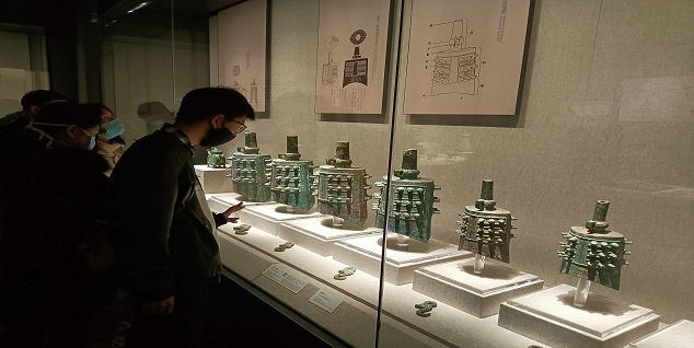 下午2点,青马班成员抵达河南博物院并有序进场。在青马班班长冯雅君的带领下,成员们依次参观了“泱泱华夏,择中建都”、“明清河南”、“中原古代石刻艺术”、“中原楚系青铜艺术馆”四个主题陈列,极富特色的史前文物、玉器石刻、商周青铜器、陶瓷器等映入眼帘。“贾湖骨笛”历史悠久,书写了中国古代音乐文明史的奇迹;“玉柄铁剑”铸造精密,有“中华第一铁剑”之美誉;唐三彩与陶瓷绚丽迷人,竞显唐宋文化的繁华璀璨......同学们深入了解文物的发源、使用、出土、内涵,进一步领略文明与国度的兴衰更替,油然而生对中原文明的敬畏之心,感受到强烈的历史厚重感和文化使命感。沉浸在河南文化的魅力之中时,成员们还及时记录笔记,互相分享对多种文物不同的见解与看法,分享此行的所见所感,久久不能忘怀,并合影留念,本次活动圆满结束。