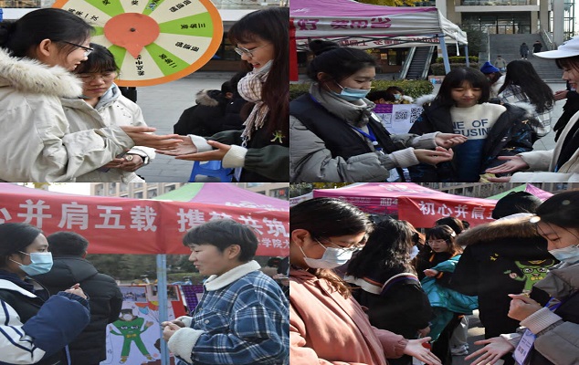 本次活动采用“线上和线下”相结合的方式 ,面向全校师生开展。线下活动前,通过a小说 官方QQ、微信公众号集赞兑换奖品与微博评论抽奖的方式进行线上预热宣传;线下活动则由记者团成员通过趣味小游戏、“幸运大转盘”、留言板等方式与同学们面对面互动,参与者关注a小说 官方微博、微信公众号、QQ,与记者团成员进行趣味小游戏胜利后,即有机会转动大转盘获得精美礼品一份。活动期间,现场气氛热烈,在解释游戏规则后,同学们纷纷摩拳擦掌、跃跃欲试,热情高涨地与记者团成员进行游戏。游戏过程中,穿着玩偶服的“X先生”也惊喜亮相,吸引了众多同学,在现场与大家进行亲密互动并合影留念。最后,同学们把自己对生命大学生记者团五周年的祝福及自己对未来的美好希冀写在留言板上,积极向上的青春风貌与生命大学生记者团的激扬活力交织在一起,欢声笑语的场面成为校园里的一道靓丽风景线。