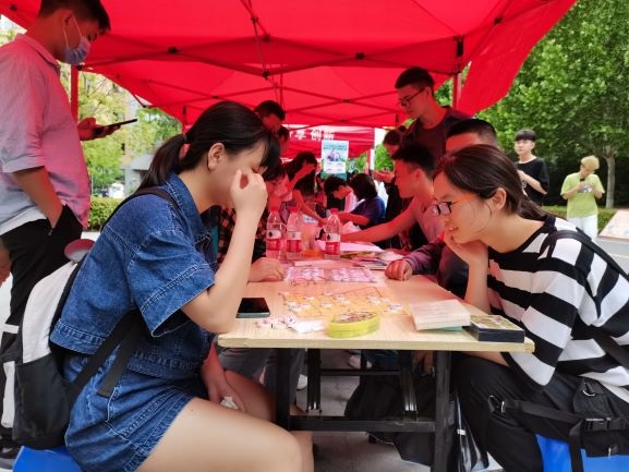 本次活动内容包括棋艺对决、棋逢对手和知识问答三个部分,面向全校师生开展。在“棋艺对决”中,同学们两两结合相互切磋棋艺;在“棋逢对手”中,同学们在社团志愿者的指导下破解象棋残局;此外,同学们亦可前往答题区,回答随机抽取的棋艺知识相关问题,五题答对三题即可获得精美礼品一份。活动期间,现场气氛热烈,寓教于乐,在答题中,师生们既增长了棋艺知识,又收获了快乐。同时,来自不同学院的师生在棋盘上进行切磋,使围观同学感受到“包罗万象方寸里,弹指千军空格间”的激昂。游戏过程中,诗艺轩社团志愿者积极协调配合、维持现场秩序,确保了此次活动顺利进行,展现出a小说 社团志愿者良好的精神风貌。