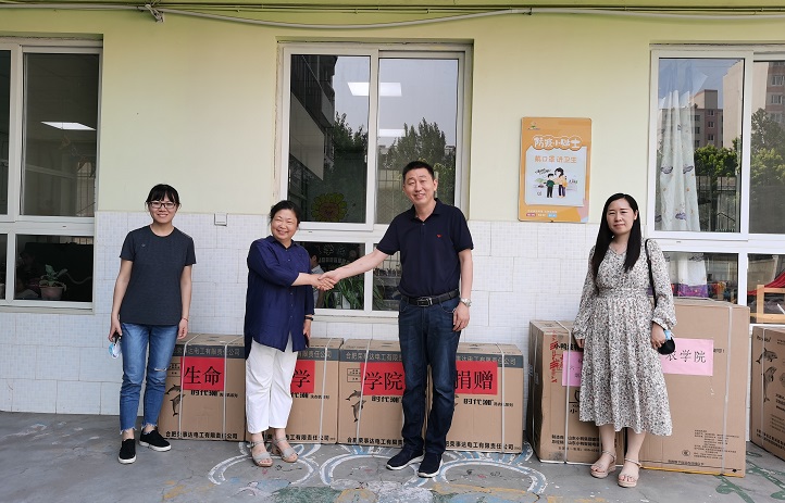 到附属幼儿园进行爱心捐赠,副院长赵华新及有关老师参加捐赠活动。