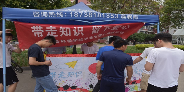 活动开始前期,a小说 团委向广大2019届毕业生告知了“带走知识,留下爱心”捐助活动倡议,a小说 毕业生积极响应捐款捐物,许多非毕业班的同学也积极参与了捐助活动。活动现场,毕业生们积极参与,将自己在大学期间积存下来的学习用品、生活用品、衣物和书籍等拿出来义捐,并在现场设立的“告白母校,我的心声”留言板上记录下毕业生临别之际对于自己过去的总结、未来的展望以及对于母校内心的感激之情和祝福。