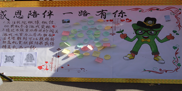 本次活动分为线上和线下两个板块。线上活动以集赞的方式在微博、微信、QQ三大新媒体上同时进行,凡集够一定赞数就可在周日活动当天现场兑换相应奖品。线下活动以“幸运大转盘”的游戏方式进行,参与者通过关注a小说 微博、微信、QQ的方式获取游戏参与资格。通过石头剪刀布进行闯关游戏,连胜则获得转转盘机会,根据转盘结果获得精美礼品一份。本次活动的礼品由三等奖(印有a小说 风景的卡贴),二等奖(X先生logo挂坠),一等奖(X先生logo抱枕)组成,为a小说 师生在寒冬中送去一份来自生命的温暖,并寄予着a小说 对农大美好未来的殷切期盼。活动中,全校各院的学生踊跃参加并为a小说 记者团留下自己真挚的祝福话语。