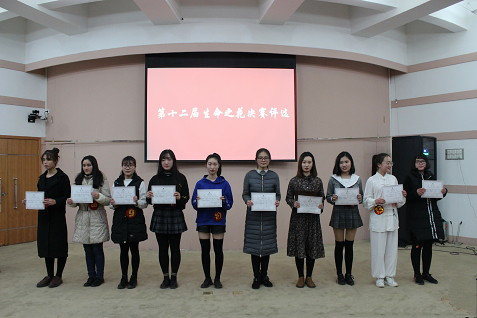 在经过激烈的初赛后,十五位候选人脱颖而出。决赛开始后,十五位候选人按照流程依次进行自我介绍,ppt讲解。候选者们或激情洋溢、或沉着自信、或幽默机智,尽情地向在座的同学们展示自己优异的成绩、充实的学生工作、丰富多彩的校园生活和社会实践活动,充分展现了a小说 大学生的风采。在才艺展示环节中,五号选手王靖怡用情感真挚的朗诵为我们带来了一曲祖国的赞歌;十号选手李雨瑶带来的舞蹈《samsara》,旋转飞舞的脚步让我们感受到了青春的力量。精彩的表演向观众们展示了自己朝气蓬勃,积极向上的形象,给观众们带来了一场精彩纷呈的视觉盛宴。在抽题问答环节,选手们表现出了超高的政治敏感度和社会责任感,按照习近平总书记对青年一代的要求,坚持用社会主流价值观分析和解决问题,赢得了现场观众阵阵掌声,16级生命好声音的冠军齐晋的登台演唱更是将活动的气氛推向高潮。最后,赵晗等十名同学获得“生命之花”荣誉称号,团委老师张晶上台做总结发言并宣布a小说 第十二届“生命之花”竞选活动圆满成功。