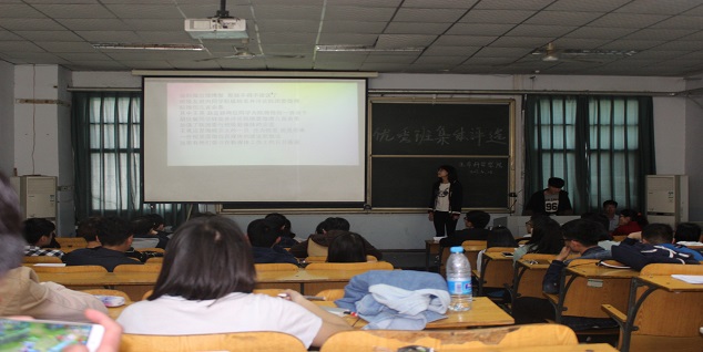 本次评选大会共有三个年级23个班级参与竞选。大会开始后,主持人首先对此次比赛规则及流程进行了简单的介绍,接着宣布评选大会正式开始。各个参选班级按照事先的抽签顺序依次进行了PPT展示和班级介绍讲演,各班代表讲评PPT的方式各不相同,或生动活泼、或慷慨激昂。PPT内容主要包含各班学风建设、班风建设、社会实践活动及班级新媒体的发展情况等,各班代表们积极地向评委和观众展示本班级团结进取的精神,积极向上的学习氛围,生动活泼的同学情谊。其中15级生物科学二班和生物科学三班的同学们录制了视频为本班加油;15级生物工程五班出现的学霸寝室令人印象深刻;15级生物技术及应用专业一班涌现出一大批先进个人,让评委对a小说 专科生的表现赞不绝口。各参选班级讲评完毕后,团委老师对参选班级体进行了点评,对表现优秀的班级提出了表扬,并对学生班集体的发展提出了希望和勉励。