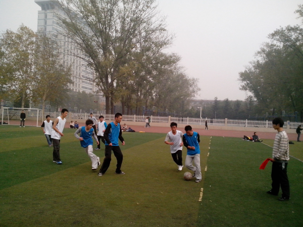 足球队永不放弃,奋力拼搏精神的12级新生足球队员依然在场上奔跑。让我们期待在接下来的比赛里,同学们有更多更精彩的表现!