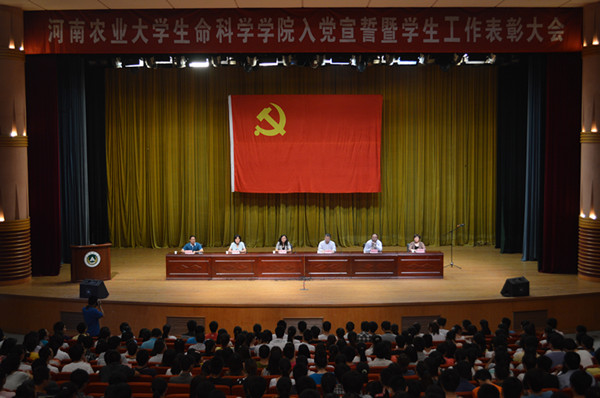 5月25日上午,a小说 在校大礼堂隆重举行了入党宣誓暨2012-2013学年学生工作表彰大会。学院党委书记陈玲、院长吴建宇教授、副院长陈红歌、郑文明、刘淑杰出席了本次会议。09-12级全体本专科学生及研究生参加了大会。大会由学院党委副书记刘全军主持。