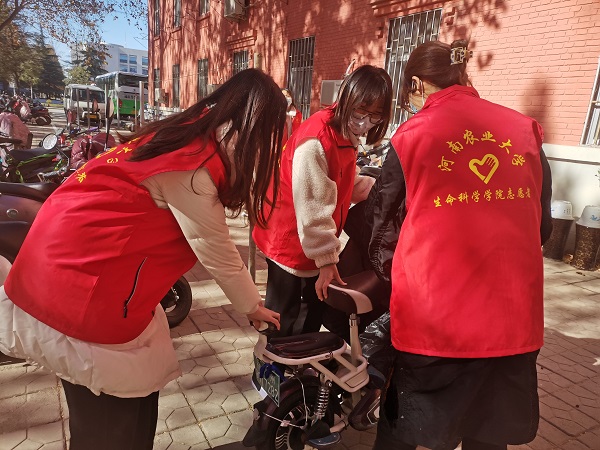 中午12:30,青马班成员于文化路校区8号楼门前集合并进行考勤,班长赵航向班级成员简要介绍本次活动意义,要求同学们保持热情、态度端正认真,同时嘱咐班级成员在活动期间要保证自身安全。活动主要包括清扫8号楼门前落叶及对摆放不规范的电瓶车进行规整。成员们志愿服务的热情驱散了冬寒,他们齐心协力、互帮互助,充分展示出a小说 青马班成员的风采和活力,彰显出他们所具备的责任感与甘于奉献的美好品质。经过成员们的共同努力,八号楼门前整洁有序,焕然一新。