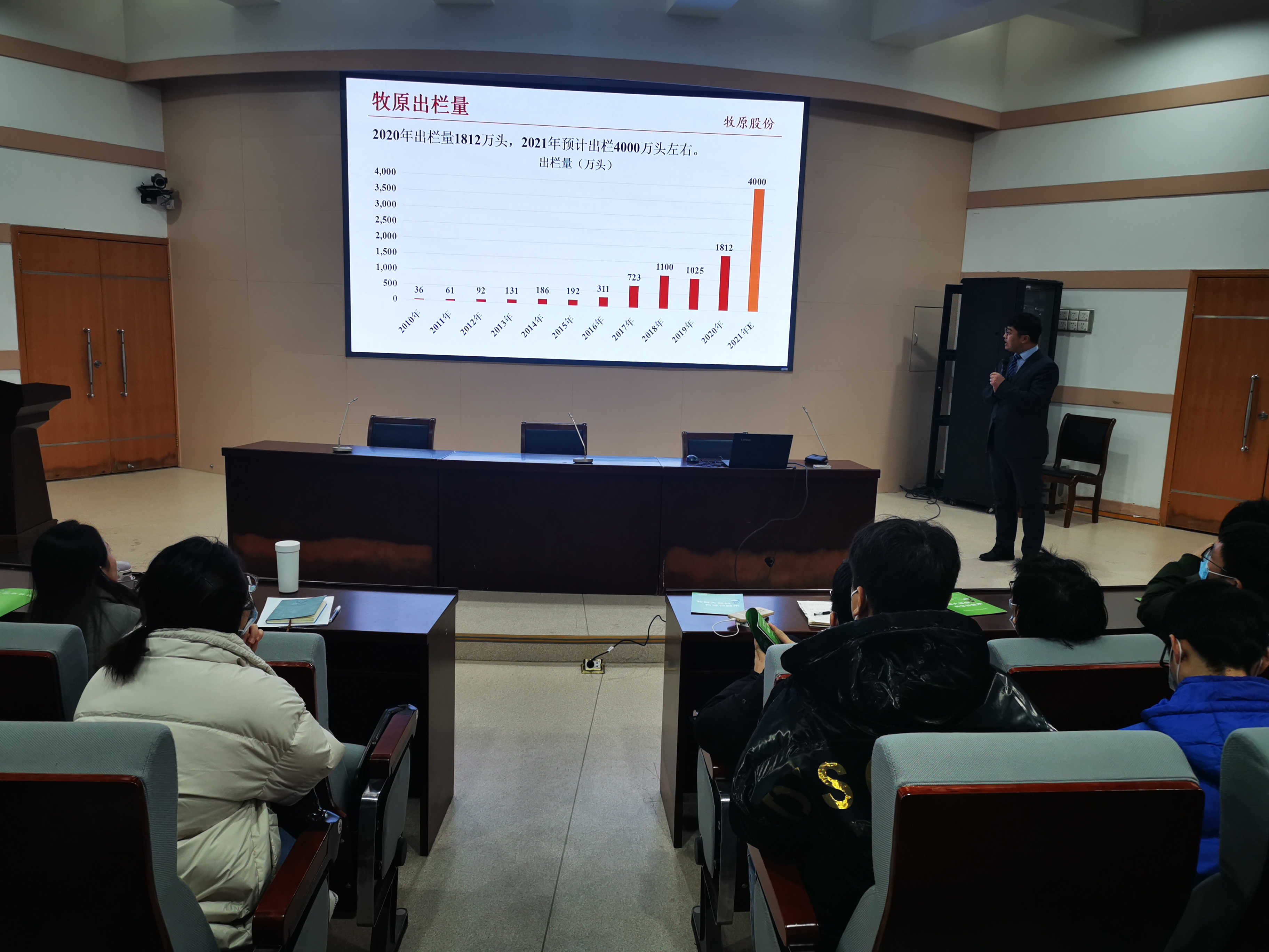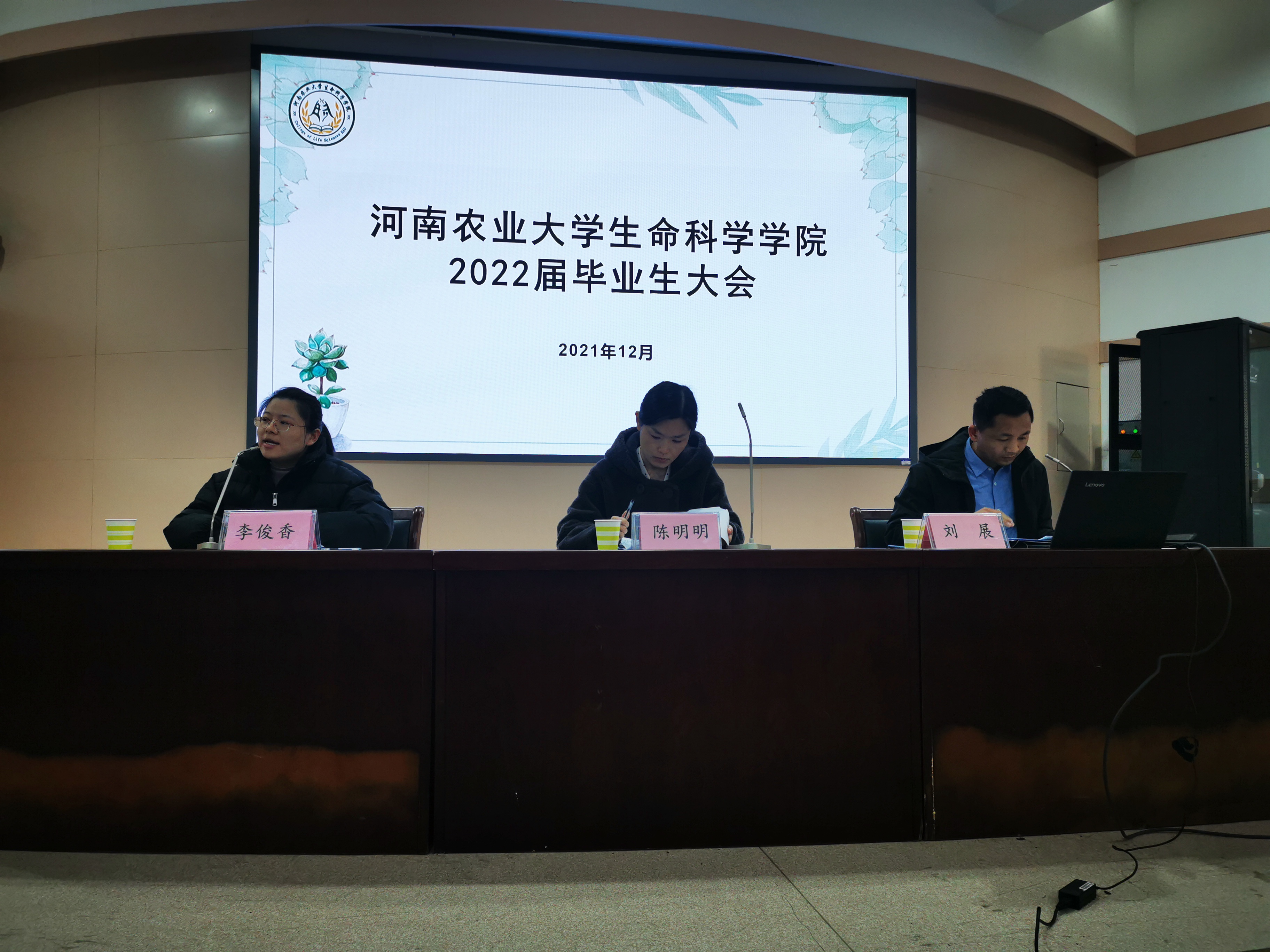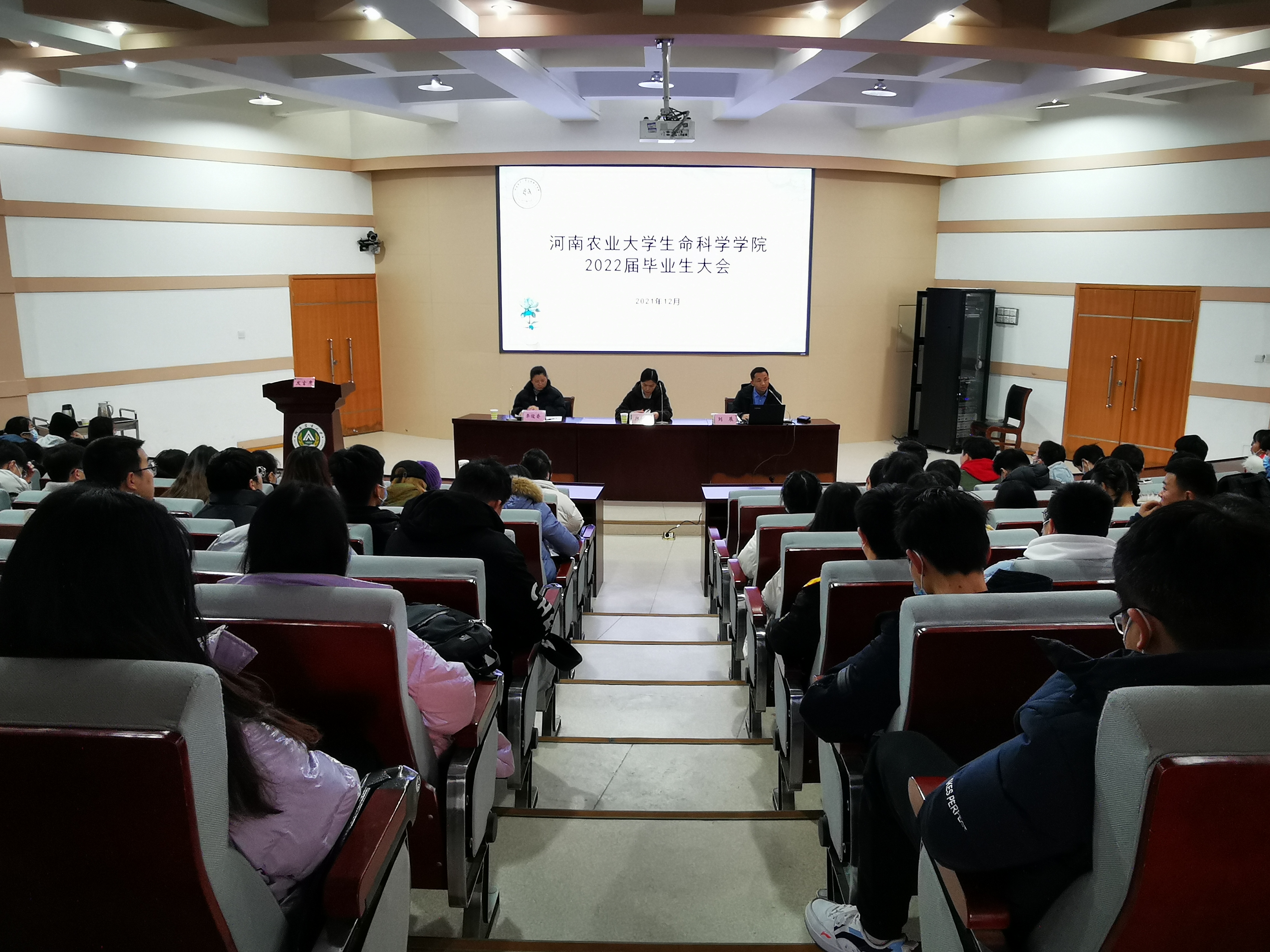 会议开始,李俊香对与毕业生相关的毕业实习、设计与答辩、补授学位等问题作了详细解释,提醒毕业生对照学校学位授予相关要求查漏补缺,在毕业前完成各项学习指标任务。然后,陈明明对刚过去的研究生笔试作了总结,分析了当前的就业形势,鼓励同学们考研就业两手抓,积极调整心态、转变观念,提醒大家“方向比努力更重要”,而且要放下面子,实干笃行。她还着重强调了安全问题,再次提醒毕业生要重视并保护好人身、财产安全,生命至上,严格落实学校、社区疫情防控要求,为打赢疫情攻坚战做好自己的分内之事。刘展讲解了国家在毕业生就业创业方面的有关政策,以及毕业手续办理、三方协议签订等一系列毕业相关问题,希望大家做好学社衔接,为升学和就业、步入社会做好各方面准备。毕业生大会结束后,牧原食品股份有限公司来到现场做了招聘宣讲,同学们反响积极。