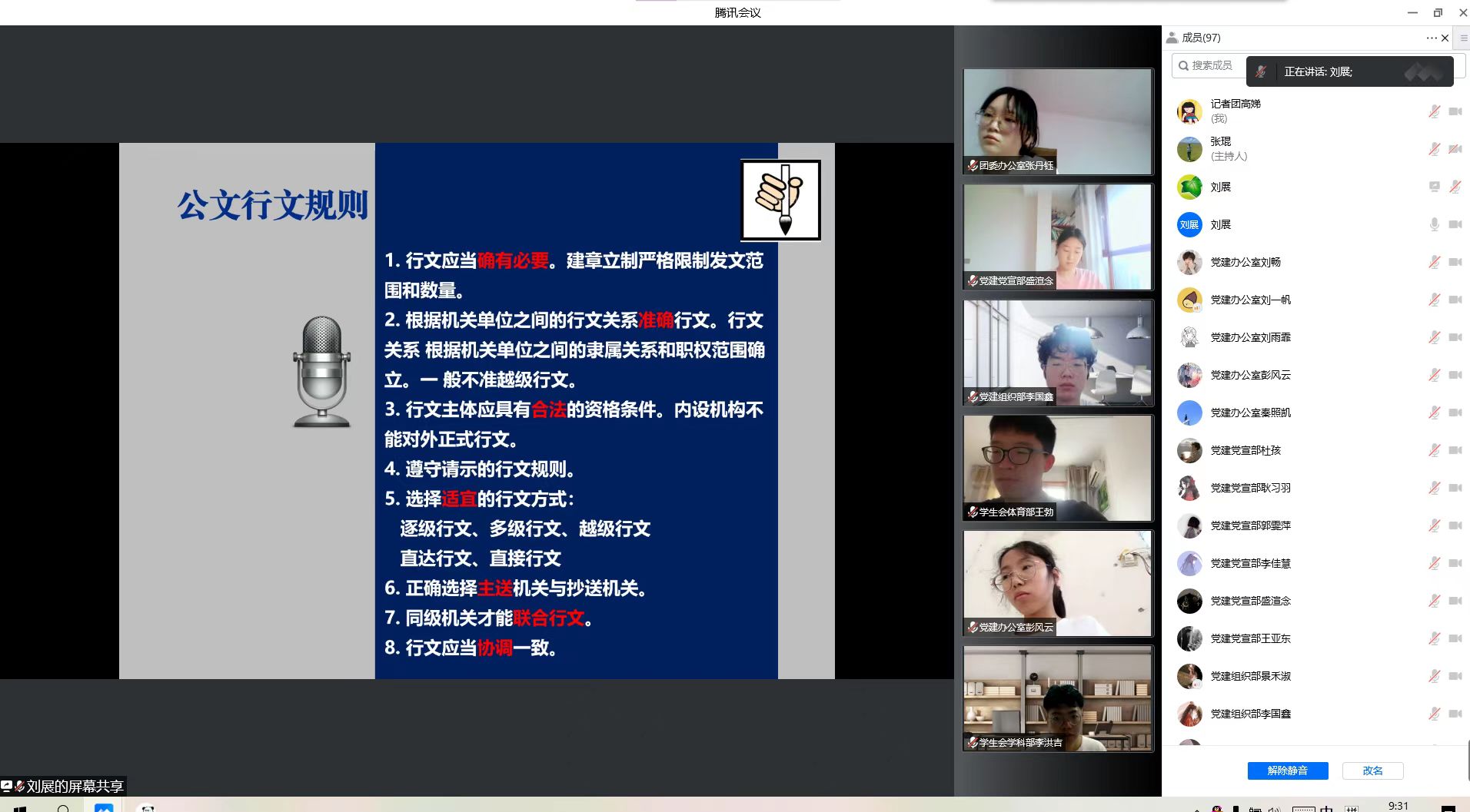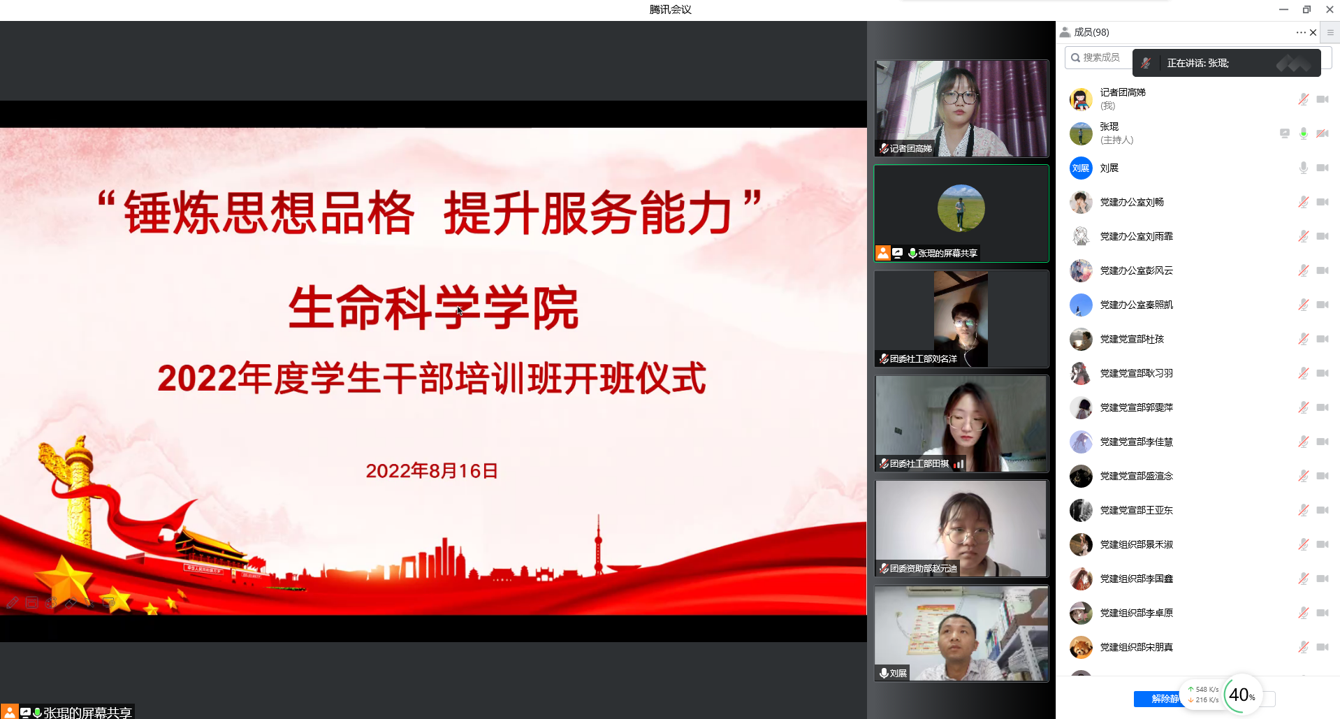 会议伊始,张琨依次介绍到场老师,并宣布本次培训大会正式开始。随后刘展从培训意义和工作技巧两个方面对培训内容展开叙述,肯定各学生组织对学院学生工作的付出,同时对全体学员后续工作提出希冀和要求。接着张琨强调此次培训会的重要性,要求学生在思想上要高度重视,端正学习态度,同时希望各部门加强沟通与交流,将学习内容应用于实践当中。随后,为期两天的培训课程正式开始。