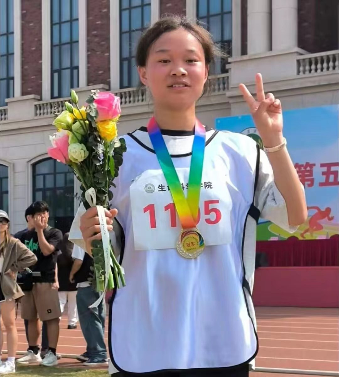 学生李雨欣荣获第53届校运会女子100米决赛冠军