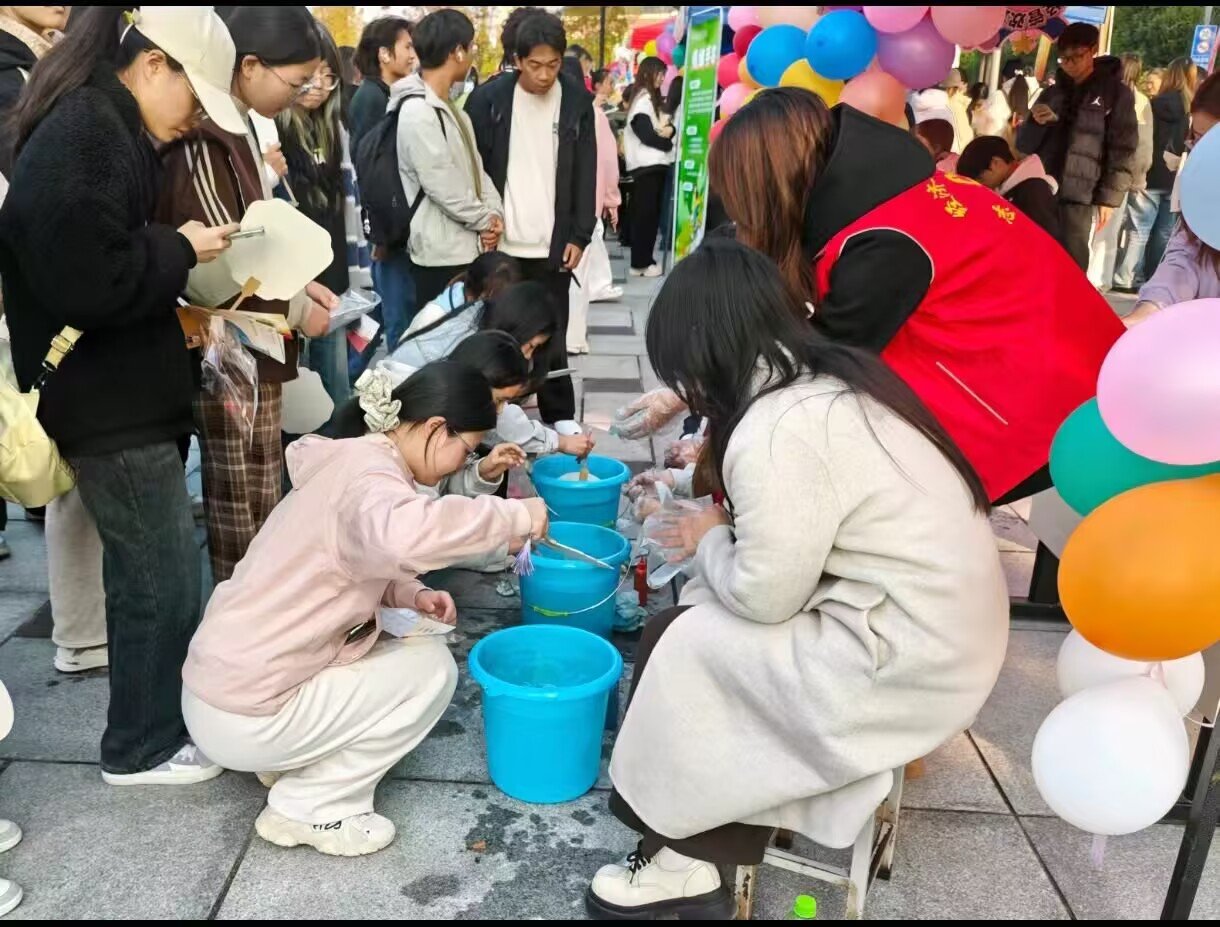 作为宣传周的重点项目,“心理游园会”分别在文化路校区与龙子湖校区同步开展。活动现场设有“运转乾坤”“车轮滚滚”“珠行万里”“众星捧月”等多项团队协作类心理拓展项目,同学们在合作中增进信任,在互动中凝聚力量。同时,“情绪曼陀罗”“答案之诗”“‘织’心驿站”“趣味心理测试”等心理体验类活动也吸引众多同学驻足参与。大家在创作与表达中觉察情绪、探索自我,在轻松的氛围中学习心理调适技巧。