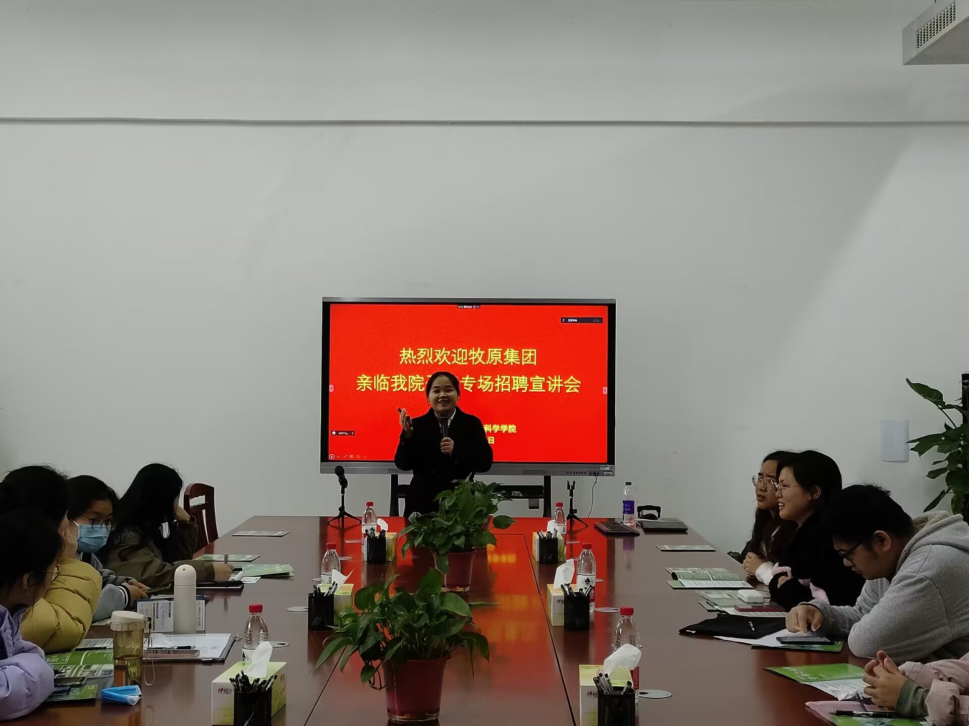 会上,牧原集团招聘负责人为大家介绍了公司概括、企业理念和培训体系等内容,并针对同学们的疑惑做了详细解答,引导大家在工作岗位上继续学习成长。