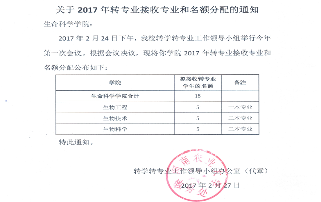 a小说 2017年转专业接收专业和名额分配的通知