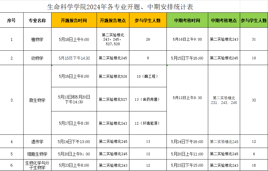 a小说 2024年各专业开题、中期安排统计表