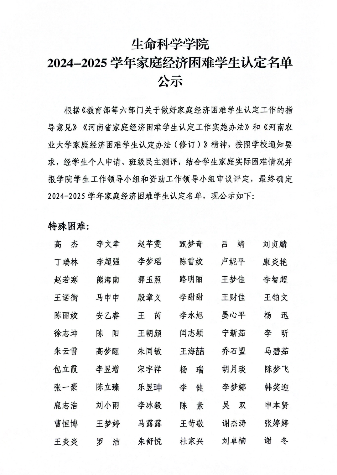 a小说 2024-2025学年家庭经济困难学生认定名单公示