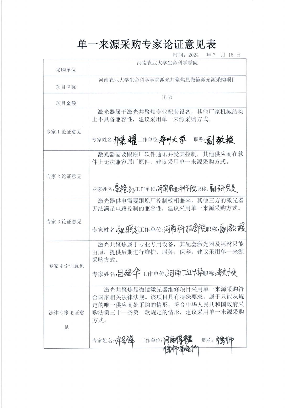 (5)激光共聚焦显微镜激光器维修项目采用单一来源采购符合国家相关法律法规。该项目具有特殊要求,属于只能从规定的唯一供应商处采购的情形,符合中华人民共和国政府采购法第三十一条第一款规定的情形。