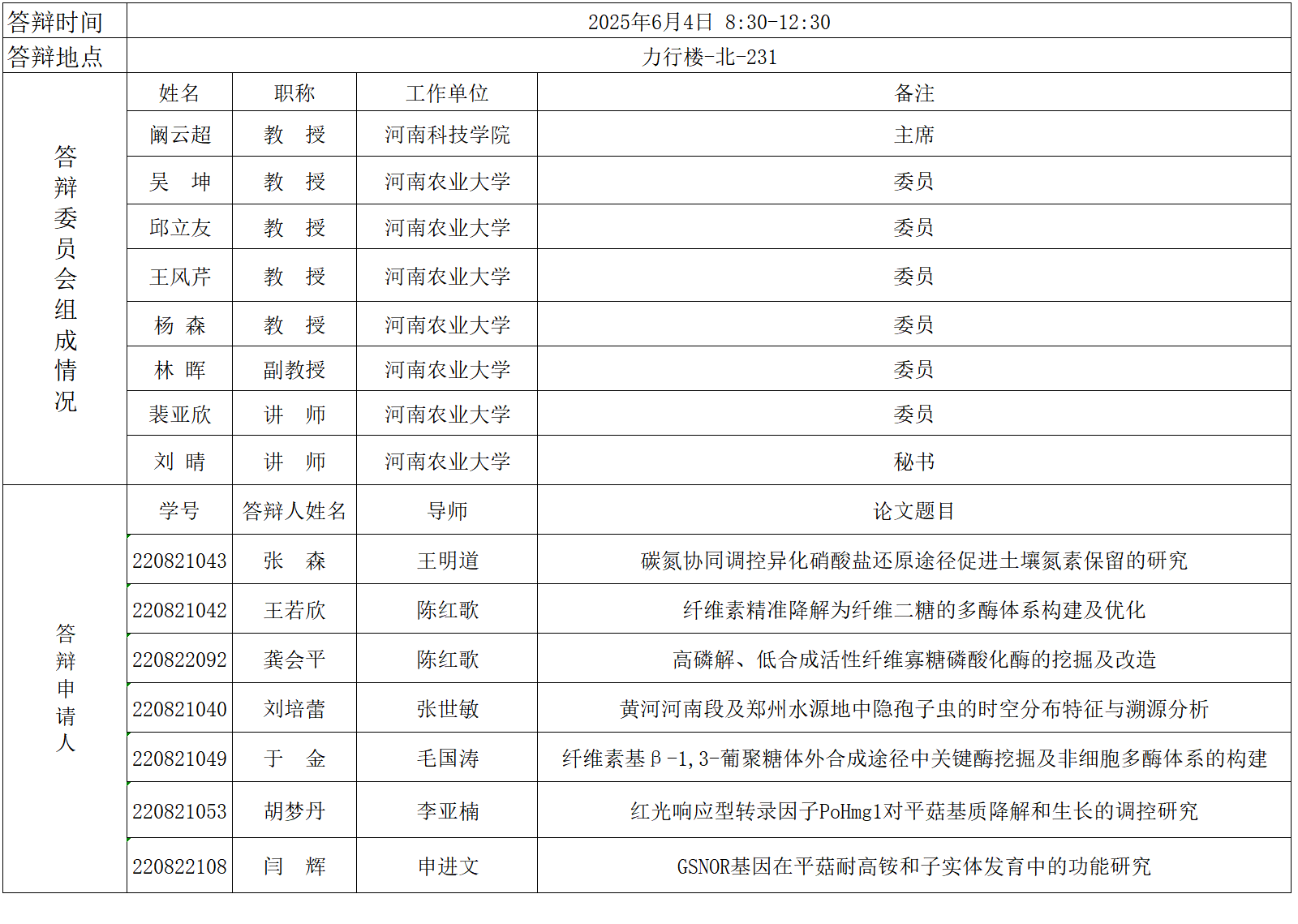 2025年上半年微生物学硕士研究生毕业答辩公告(二)