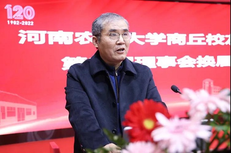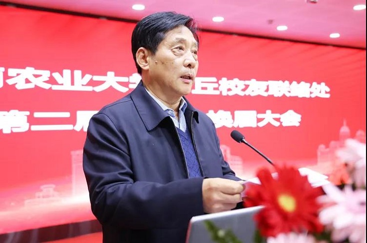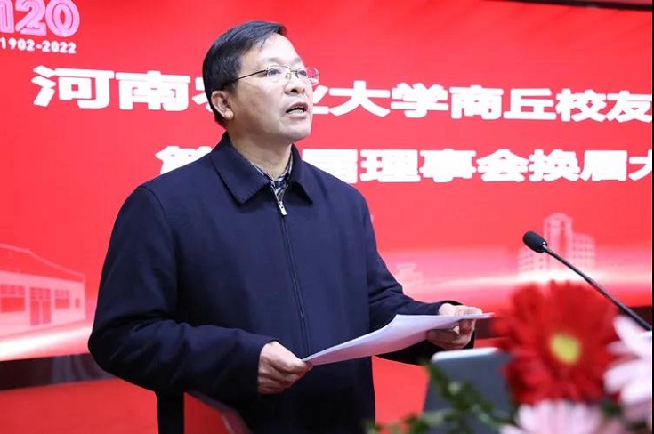 新任会长魏昭炜发言,他表示将继续担当起团结校友、联络校友、支持校友的重要责任,努力搭平台、促交流、谋发展,为商丘经济社会建设和乡村振兴、农业农村的发展做出应有贡献。