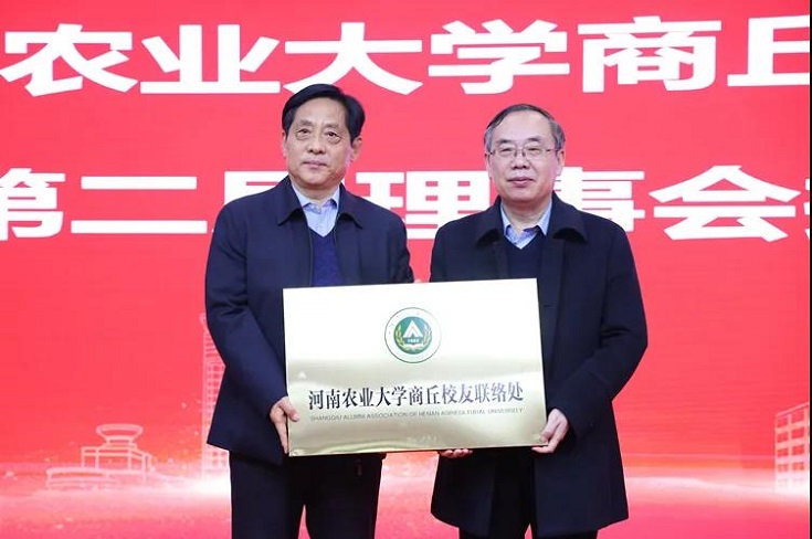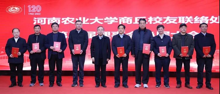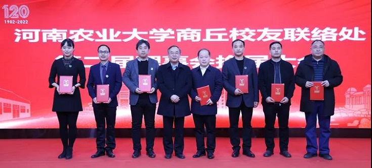校友会商丘校友联络处第二届理事会成员。尚富德为理事会成员颁发了聘书,向新一届商丘校友组织授牌和授旗。a小说