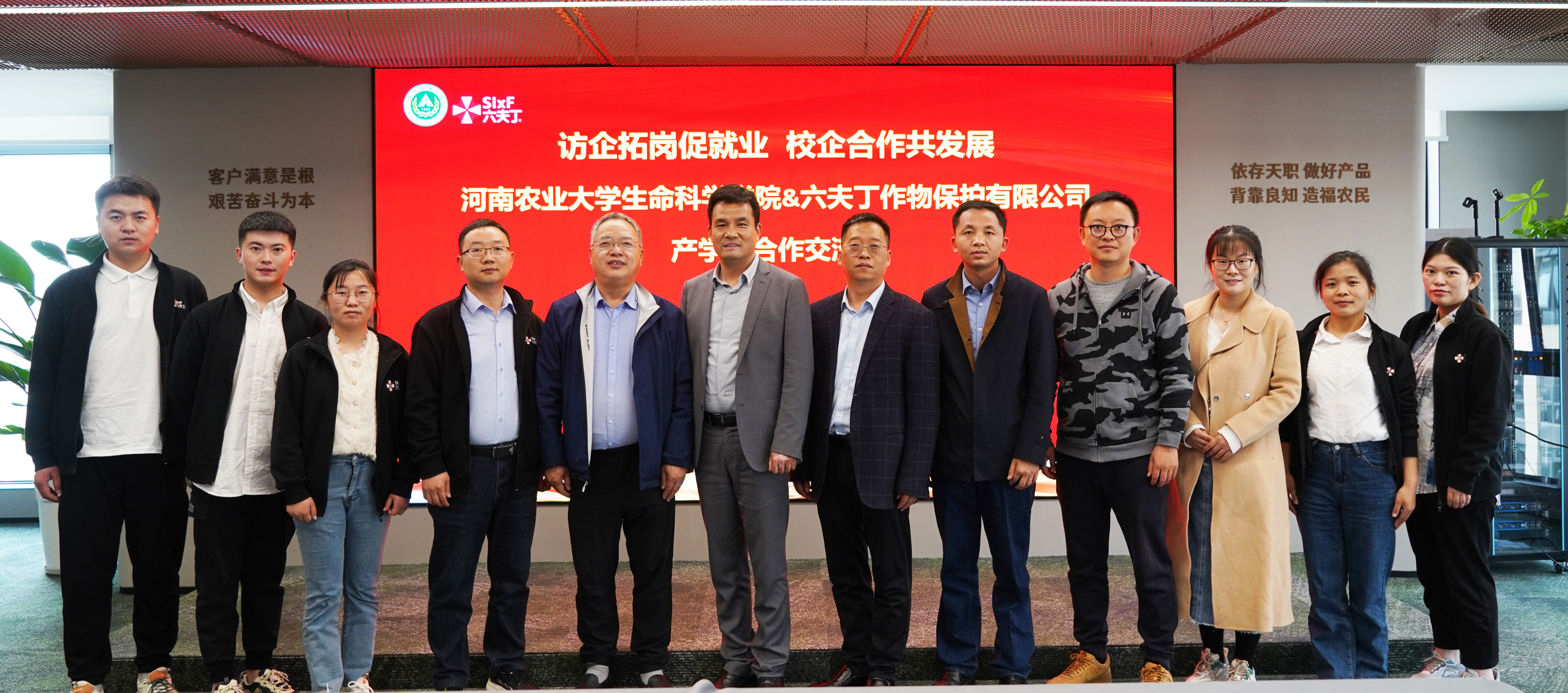 党委书记刘国兵、院长吴建宇,及院团委书记刘展、生化系主任王潇然、徐玉芳老师一行前往六夫丁作物保护有限公司开展合作交流。六夫丁公司董事长陈诺、营销服务中心总监李亚辉及相关职能部门负责人参与交流。