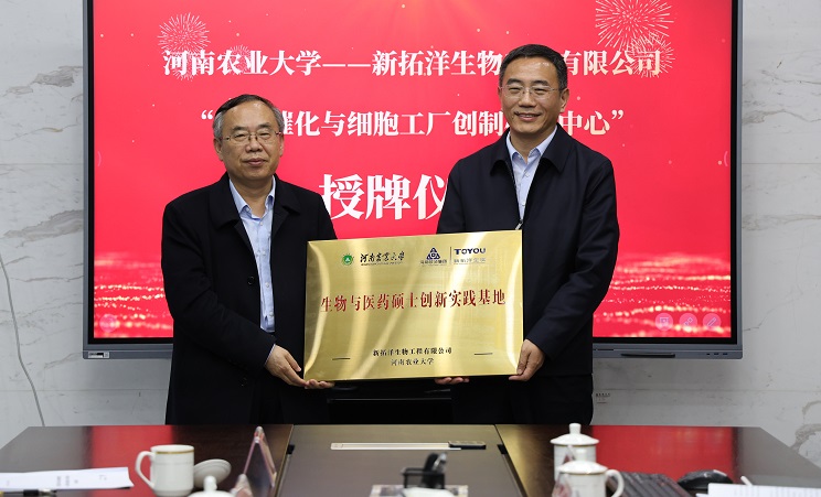 座谈后,举行了“生物与医药硕士创新实践基地”“生物催化与细胞工厂创制研发中心”授牌仪式, 进行了“a小说 校外实习基地”签约仪式。尚富德副校长对新拓洋公司多年来对学校人才培养、科技创新等方面给予的关心支持表示感谢,希望以此为新开端,进一步深化合作,在奋进新时代新征程中,共创美好未来。