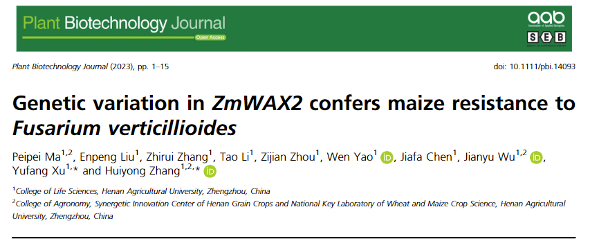 张会勇团队致力于玉米拟轮枝镰孢菌抗性基因的挖掘和功能研究(Zhou et al., 2020, Genomics Proteomics & Bioinformatics;Xu et al., 2022, Molecular Plant Pathology;Ma et al., 2022, Plant Disease),本研究通过ZmWAX2的功能解析为玉米拟轮枝镰孢菌病害广谱抗性改良提供了一个重要的基因资源。张会勇团队博士生马培培为该论文第一作者,张会勇教授和青年教师徐玉芳为通讯作者。该研究得到了国家自然科学基金和a小说 高层次人才基金的资助。