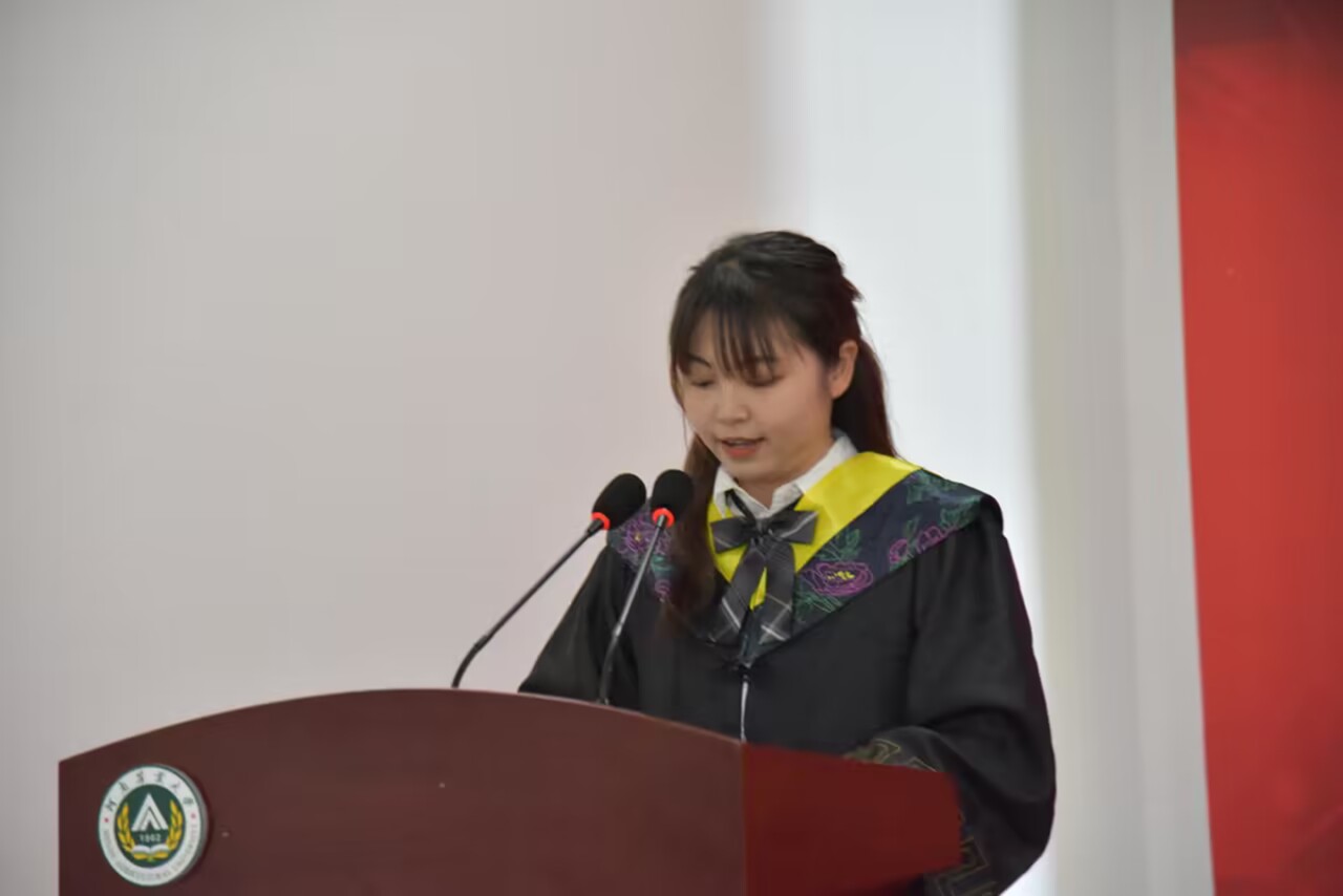 毕业本科生代表张凌寒同学发言,把自己的本科四年时光总结为“带着理想的长跑”。她表示,纵使前路有荆棘,亦当奋力奔跑,脚踏实地、追求卓越,为实现中华民族伟大复兴贡献自己的青春、智慧和力量!她也将时刻铭记“明德自强、求是力行”的校训,不忘初心,砥砺前行。