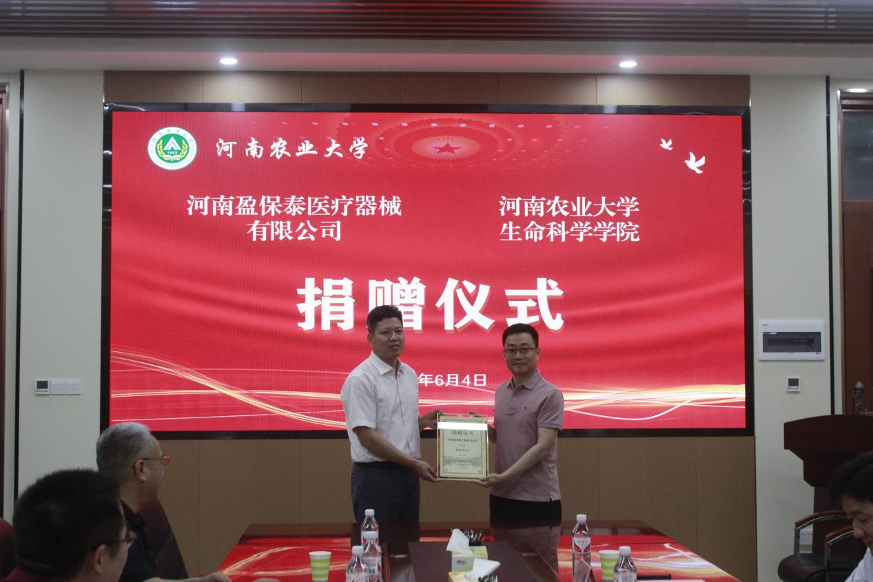 紧接着,张朝阳和河南盈保泰医疗器械有限公司总经理刘涛签订捐赠协议并接受捐赠。a小说 校友联络办公室主任胡明忠代表学校向河南盈保泰医疗器械有限公司颁发捐赠证书和纪念品。