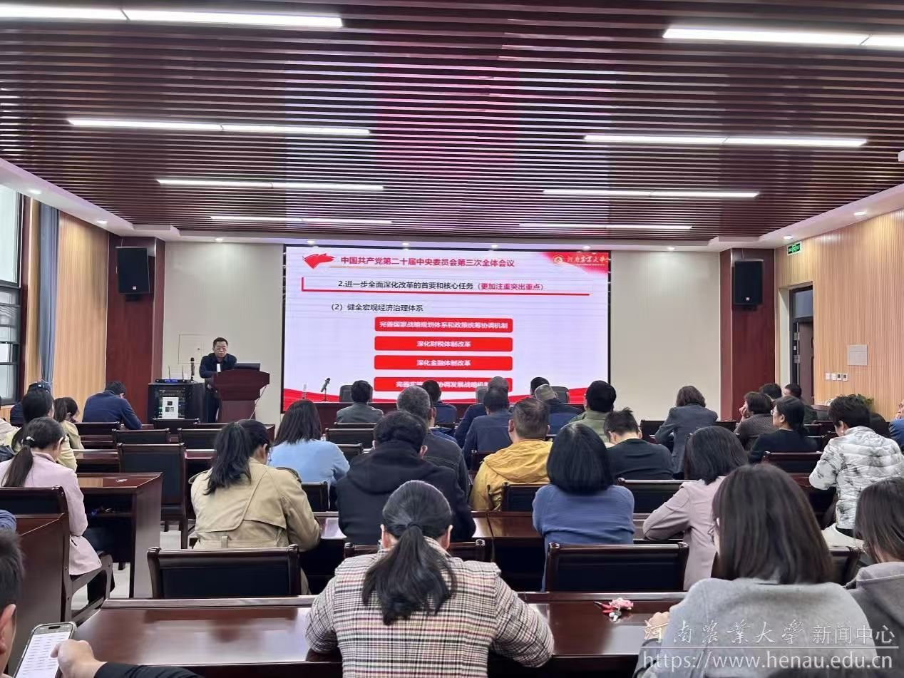 党委书记刘国兵在龙子湖校区为全院教职工宣讲党的二十届三中全会精神。