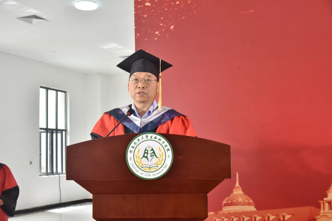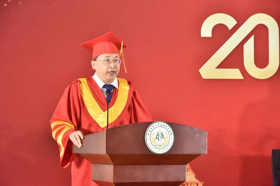 最后,张会勇在讲话中,向毕业生们致以最诚挚的祝福。他对同学们提出了三点要求。一是要终身学习以应对环境剧变。未来同学们将会面对不确定的环境压力,请记住机遇偏爱有准备的人,唯有持续进化,勇于创新,才能在这充满“选择压力”的时代浪潮中保持优势;二是要拒绝无效“内卷”,追寻共生价值。愿同学们以“识己之能”为基,以“容人之长”为翼,在未来让个体微光汇聚成照亮旷野的星河;三是在生命科学探索的道路上要心怀敬畏。敬畏自然法则的深邃、生命历程的庄严与未知世界的浩瀚。期望毕业生于未来的成长和发展道路上,要牢记“明德自强,求是力行”的校训,以“生命人”的专业、执着与热情,保持定力和包容胸怀,从容应对挑战,在协作中创造共赢!