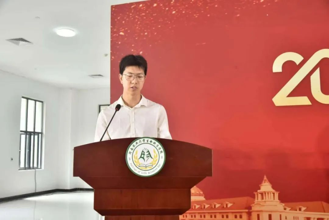 研究生代表冯雅君同学结合自身科研经历讲述了自己成长与蜕变的故事。他提到,于三年的研究生时光里,自己体会到了勤于思考、追求真理的乐趣;收获了直面困难的坚韧和攀登高峰的勇气;体悟了知行合一的力量。最后,他提出了鼓舞人心的青春宣言:不负青春,奋勇向前,共同为了实现中华民族伟大复兴贡献力量!