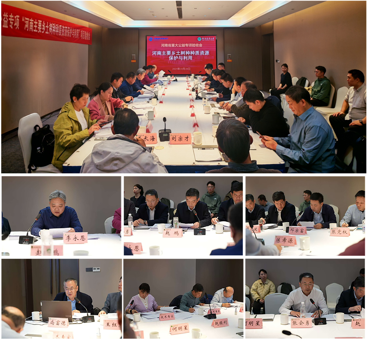 尚富德教授主持的河南省重大公益性科研专项“河南主要乡土树种种质资源保护与利用”进行结项验收。省纪委监委驻省科技厅纪检监察组副组长潘发勤,副校长赵鹏,省科技厅现代农业农村科技处处长李永恩、四级主任科员陈希源,潢川县林业局局长邓宗富,潢川县花木产业发展中心主任何明星,校科技处处长郑先波,院长张会勇出席了会议。河南大学、河南省林科院、南阳师范学院等参与单位的技术骨干参加了会议。