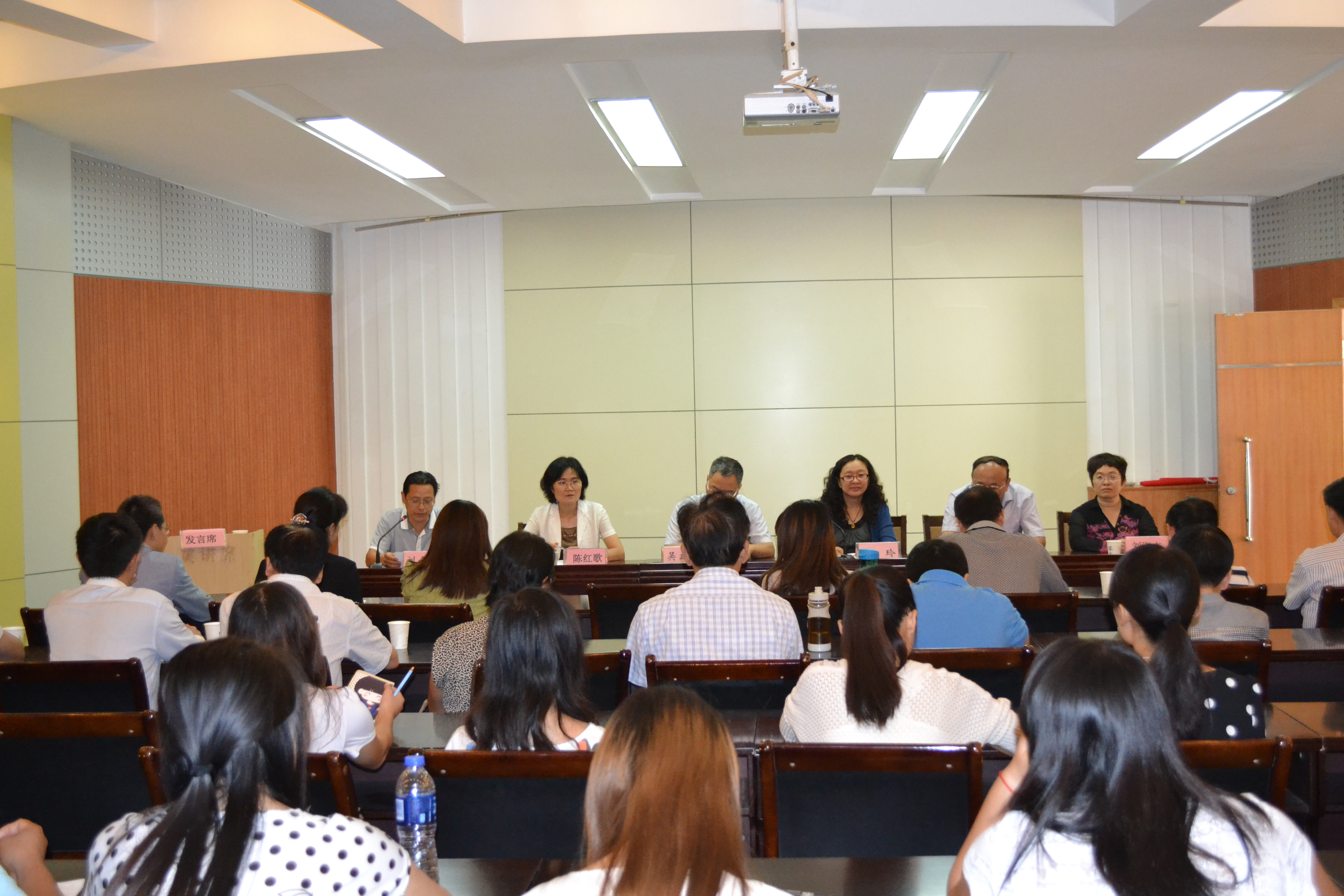 在学校100人报告厅隆重举行了2014级研究生新生开学典礼。院党委书记陈玲、院长吴建宇、党委副书记刘全军、副院长陈红歌、刘淑杰、郑文明、学院各学位点负责人和部分导师参加了典礼。典礼由院党委副书记刘全军主持。