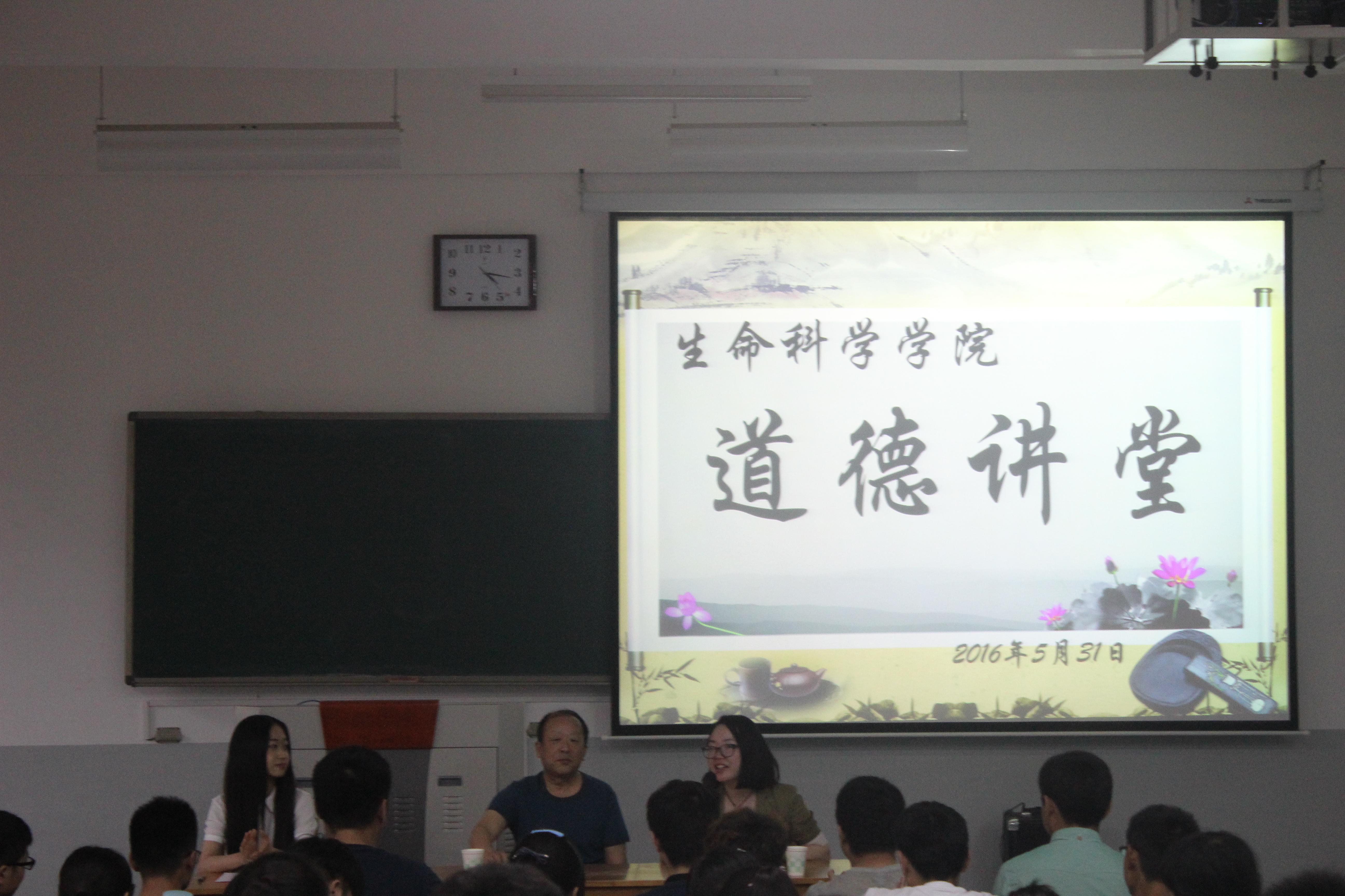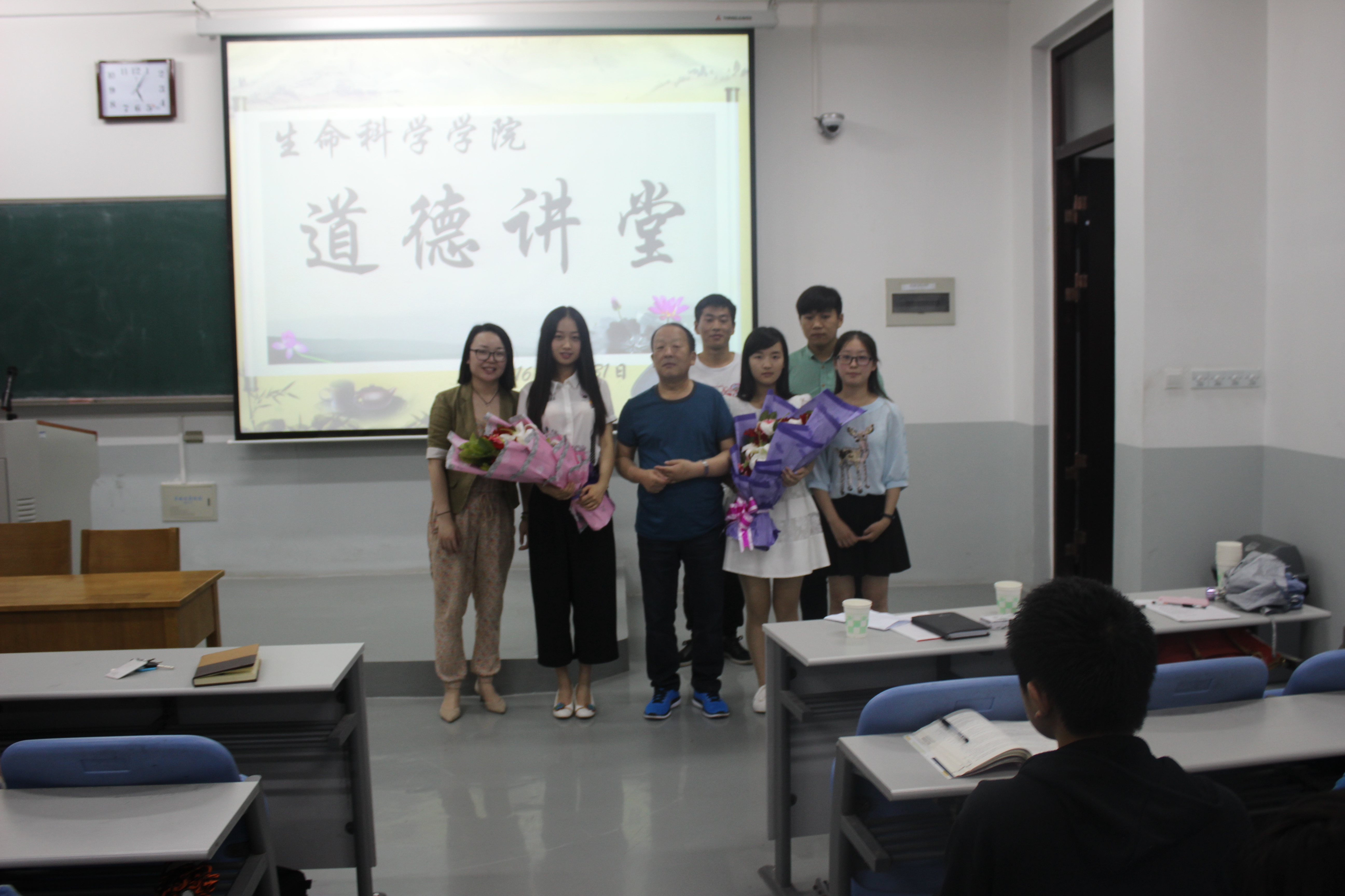 C204教室,校、院教学督导及关心下一代委员会委员孟凡庭教授已其丰富的治学、劝学体会和经验,首先提出了目前大学生的学习生活、健康成长等方面存在的问题。然后他以“梦想的重要性”为切入点,并借用学生事例对想和学习的关系进行了仔细讲解,通过分析班级班风和寝室学习环境对学习的影响点出了梦想的重要性。他鼓励同学们业余时间多参加活动多锻炼自己,以“有志者,事竞成”来激励自己追逐梦想、实现梦想和拥有梦想。