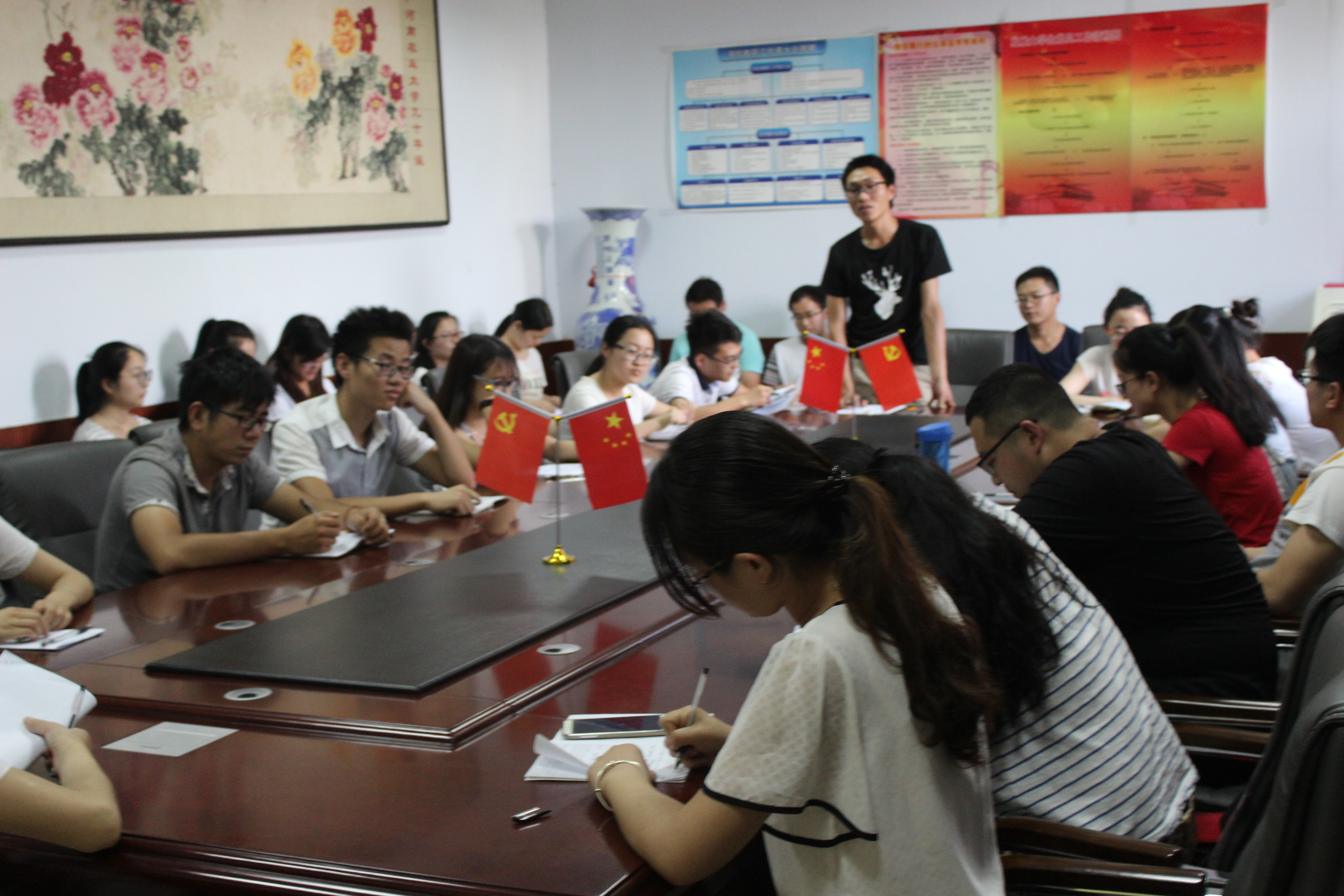 6月29日下午,a小说 研究生党支部在a小说 文化路校区一号楼309会议室举行了以“不忘初心,重温入党志愿”为主题的党员交流会。会议由李晓老师主持,a小说 全体研究生党员参加了此次会议。