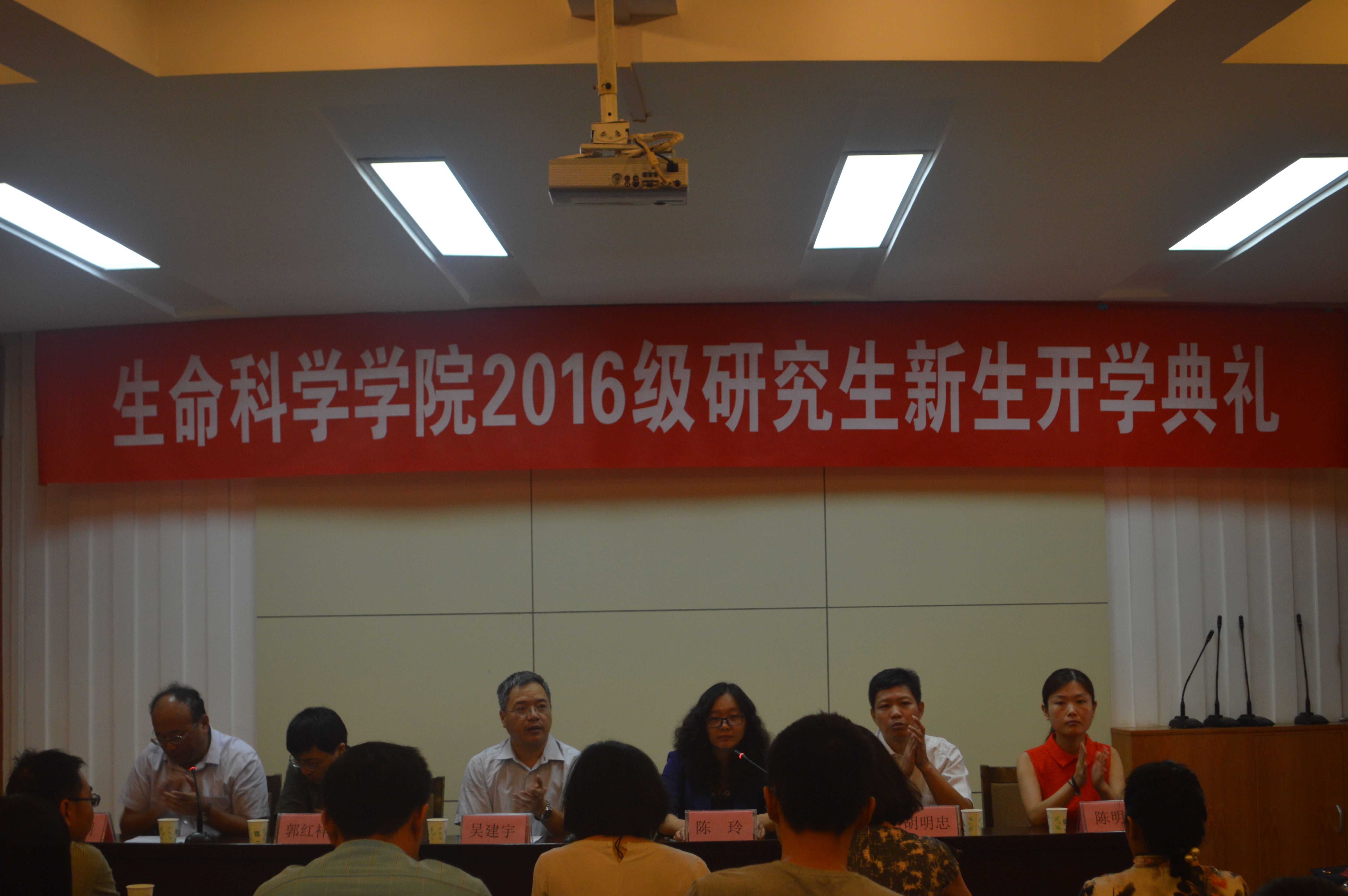 在庄严的国歌声中,开学典礼拉开了帷幕。首先,院长吴建宇教授致欢迎辞,向新生详细介绍了学院发展历程和成就,并提出期望,希望同学们要认真对待学术研究,勇于创新,秉承农大人的 “实践”精神,为成才之路坚定方向。导师代表、省特聘教授杨国庆老师作了热情发言,鼓励同学们树立目标,主动学习。告诫同学们做学问首先要学会做人,要严谨对待科研,严守学术道德和规范。高年级研究生代表李涛和2016级新生代表盛阳阳分别进行了发言。他们都表示应该博取众长,厚积而薄发,秉承农大“明德自强,求是力行”的校训,明确目标,内强素质,外强体魄,健康、快乐、充实地度过研究生阶段。陈玲书记做了总结讲话,陈书记的讲话亲切、实在,令人精神振奋。她首先表达了对2016级研究生新生的热烈欢迎和祝贺,同时希望各位新生能够做到以下四点:一是胸怀天下,志存高远;二是培养良好的学习能力;三是做好人生规划;四是更加专注、坚持,并以女排精神激励大家,希望每一位学生可以不忘初心,继续前行,不念过去,不畏将来,且行且思。希望同学们在科学研究上多出成果,学业有成!