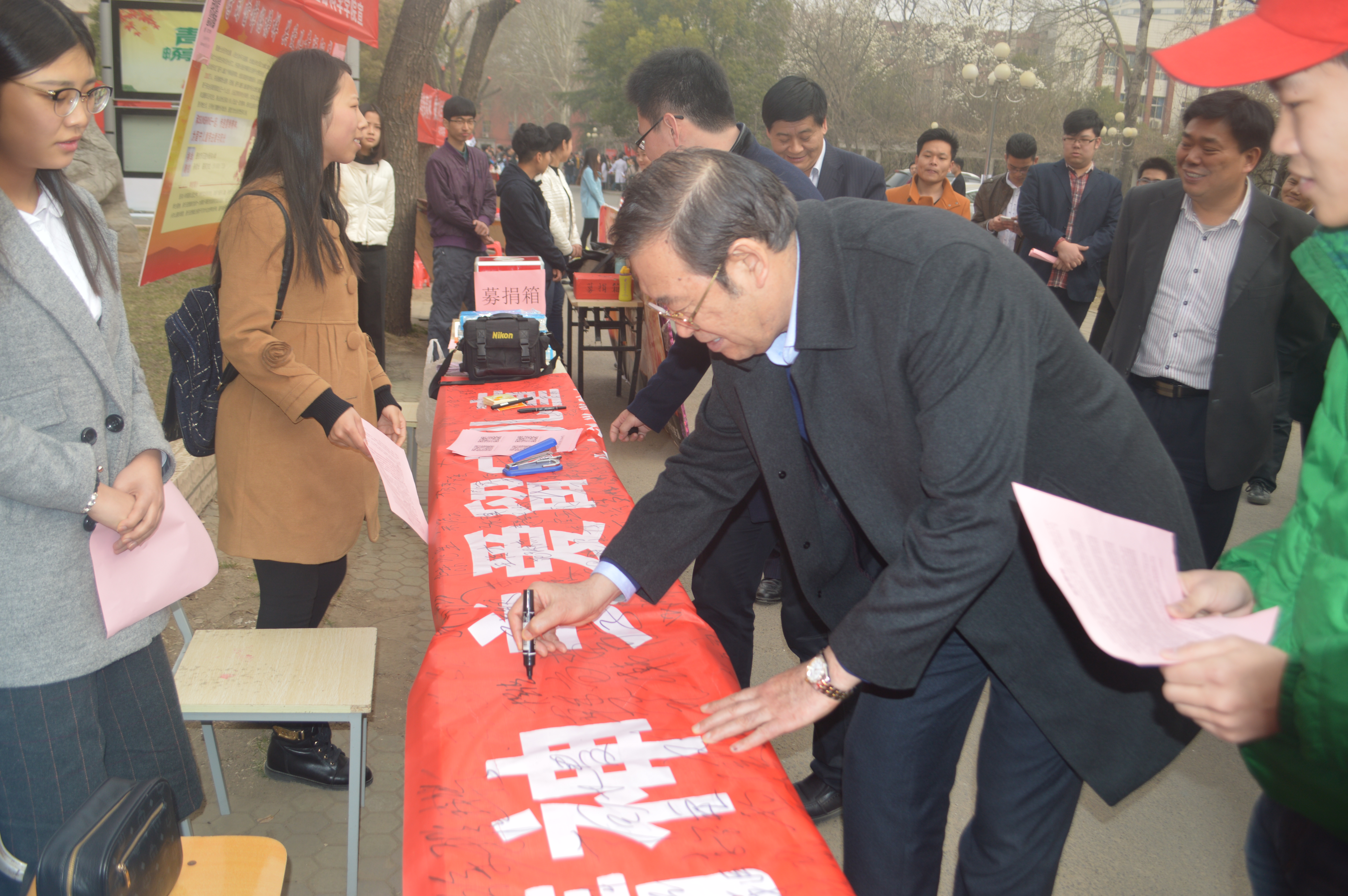 学生代表活动介绍后,纷纷在宣传条幅上签字,并为留守儿童捐出善款。校党委书记程传兴在接受采访中表示:在新时代下,雷锋精神永不过时,举办雷锋日活动是当代大学生弘扬雷锋精神,提高自我修养的重要体现。为留守儿童募捐,充分体现了无私奉献的雷锋精神,是学生们真正奉献爱心的体现。最后,程书记为a小说