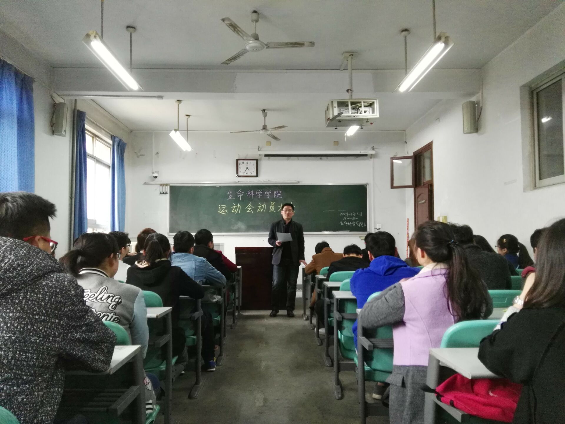 在文化路校区3号楼302教室召开运动会动员大会,为即将到来的校运会部署工作。学院团委书记程城、副书记雷雯、辅导员黄笑以及a小说