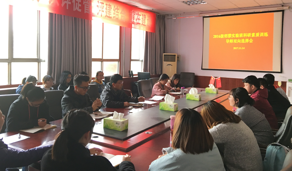 在一号楼309报告厅举行绍骙实验班导师选择会。会议由教学院长郭红祥教授主持。