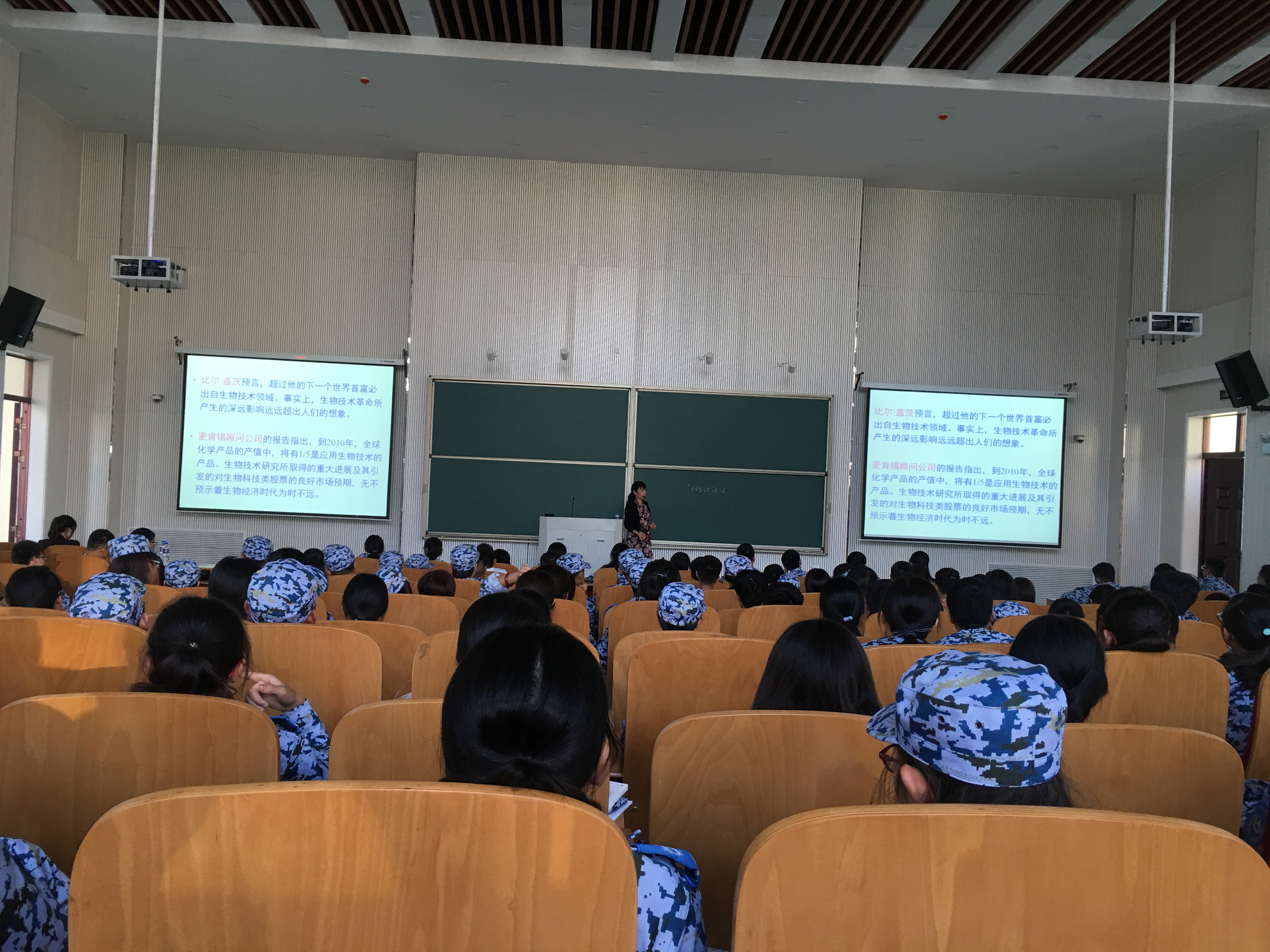 在热烈的掌声中各教室的专业介绍大会开始。生物工程专业由王凤琴老师介绍,王老师首先以“为什么要上大学”这个问题与新生谈起了在大学里的理想,并希望新生们可以找好定位,然后以生物经济与社会环境的关系为引线,以生物工程专业的就业情况和科研情况为主要内容介绍了专业的前景。生物技术专业是由陈新建老师为新生们介绍,首先陈老师用生物技术的定义和就业前景,介绍了a小说