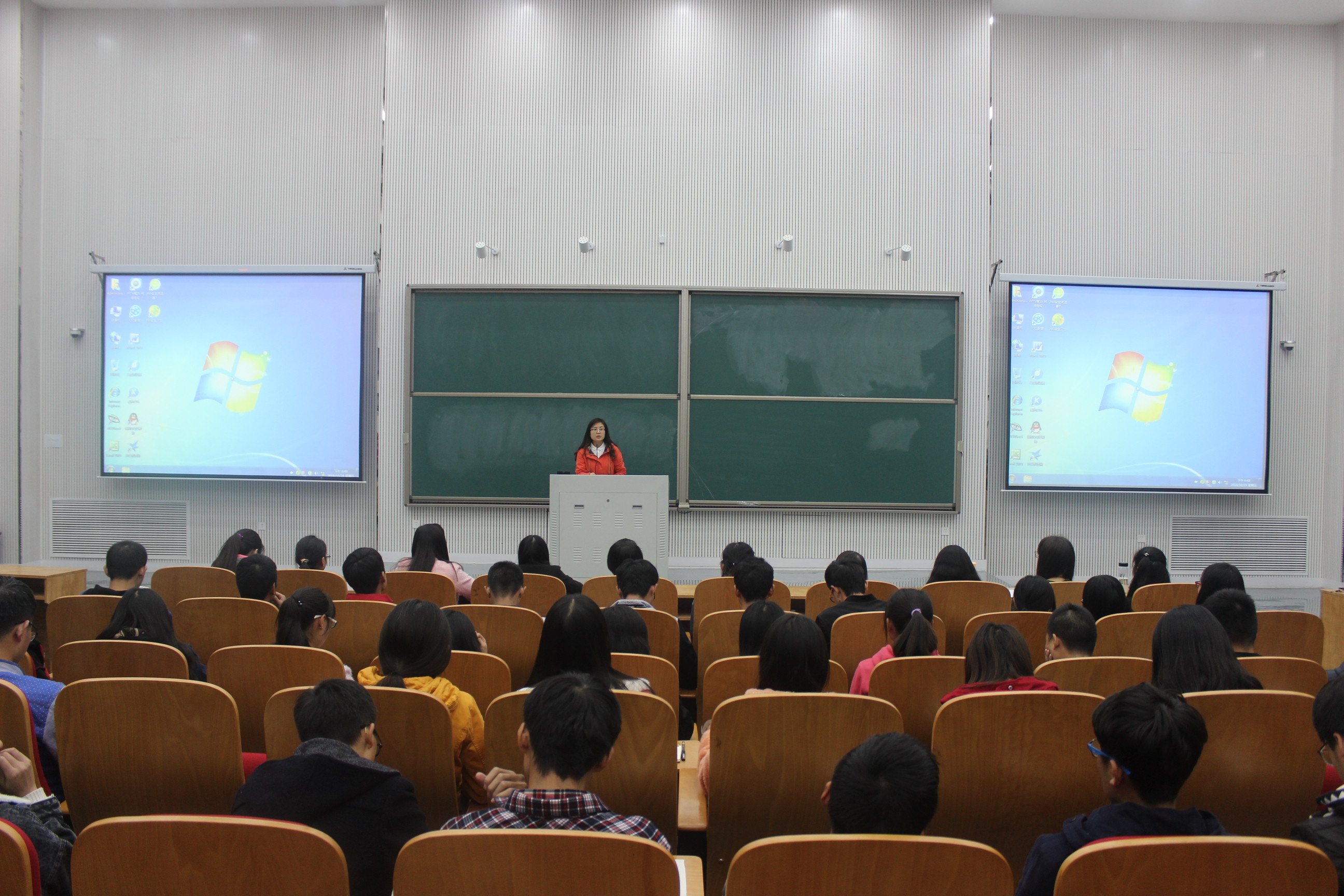 生物化学系副主任王小纯教授主讲,院辅导员姚欣及16级生物技术专业全体同学参加。