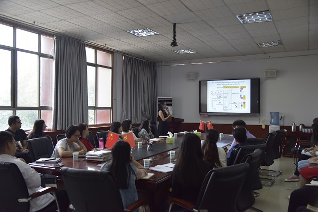 随后,王园春博士作了题为《大豆根瘤菌共生基因的筛选以及三型分泌系统效应分子的鉴定》报告。王博士结合自己在根瘤菌方面的研究,详细介绍了根瘤菌和宿主的互作关系,同时结合自己的学习经历,给在场的本科生和研究生提出了合理化的建议。