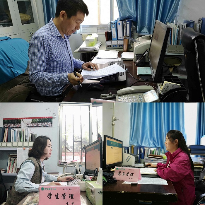 首先,学院组织两办全体工作人员召开“提高服务意识.提升学院形象”为主题的会议。院党委书记陈玲、党委副书记胡明忠、副院长陈明明结合习近平新时代中国特色社会主义思想和十九大精神,分别就职业道德建设、行业服务规范、文明礼仪养成等方面对两办工作人员提出要求。两办是直接面对师生和来访客人,是接待和服务工作的一线岗位,是学院的对内对外窗口,直接代表着学院的形象,代表着学院的作风。所以要求每位工作人员,一是业务务必精湛,工作规范,熟练自己岗位工作政策、规定和流程;二是实行首问负责制,一站式办理,不让问题落到地上;三是利用小窗口展示大形象,微笑服务,态度端正,对待师生一定热心、耐心、贴心,以师生满意为目标,树立学院服务新形象;四是优化服务环境,定期对办公室进行大扫除,适当美化,干净舒适,并提供打印、复印、扫描一体机,为师生提供便利。