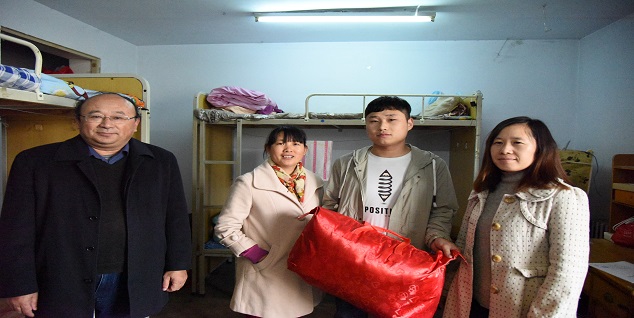 11月12日下午,龙子湖校区开展的“本科生冬季送温暖”活动开始前,a小说 首先召开了学生代表座谈会,在会议上老师无微不至的询问了学生的基本学习生活情况,为a小说 18级新生答疑解惑,鼓励a小说 学生"立鸿鹄志,做奋斗者",珍惜宝贵的大学时光,努力成为最好的自己。随后陈书记、吴院长以及各位老师走进学生寝室为家庭贫困学生赠送“爱心棉被”,实时询问家庭困难学生的具体情况,与同学们进行近距离交谈。叮嘱大家一定要注意宿舍安全问题,有困难及时向学院反应,为初入大学的新生带去学院的关心和温暖。
