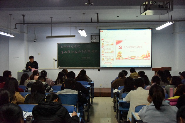 除集中的专题培训外,a小说 分党校于11月13日下午在文化路校区农业推广楼407教室组织了学习党的十九大精神、校七次党代会精神和观看党史等活动,a小说 第四十六期全体入党积极分子参加了培训,院党委副书记胡明忠主持并授课。会上,胡明忠就马克思主义在中国的发展传播和中国共产党历次党代会的简史进行了宣讲,他强调我党在发展历程中十分注重创新,在政治上、理论上、实践上取得了一系列重大成果。他要求大家深入了解党的发展历程,从历史中认真学习党的精神,深刻领会习近平新时代中国特色社会主义思想,争取早日成为一名合格的共产党员。