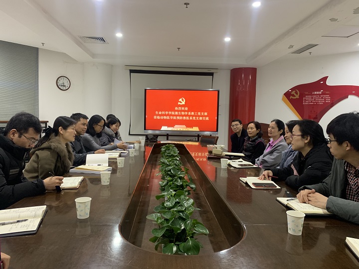 微生物学系党支部的省级样板党支部创建工作,12月2日下午,学院党委及微生物学系教工党支部一行来到动物医学院,就样板党支部创建验收等相关工作向动物医学院预防兽医系党支部开展学习交流。动物医学院党委副书记王照兰、预防兽医系党支部书记张红英等相关样板党支部创建小组成员参与。