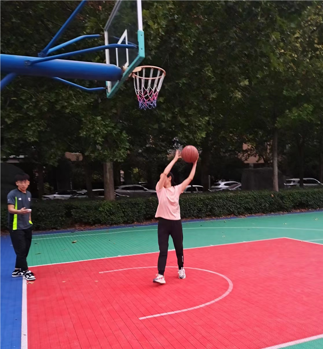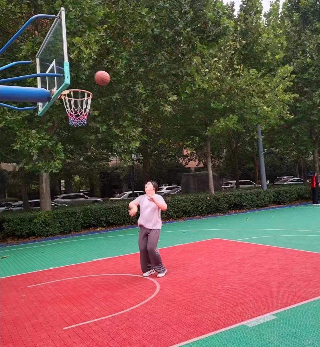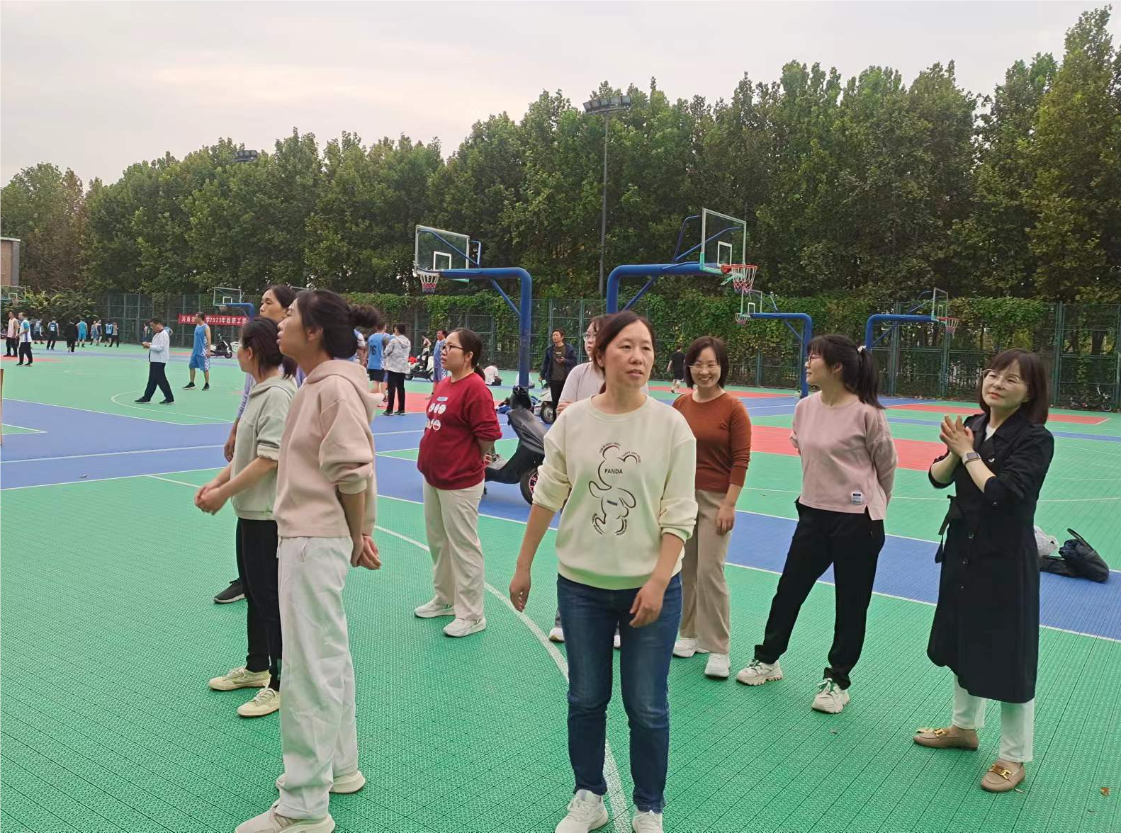 于龙子湖校区篮球场组织了教职工女子篮球赛。
